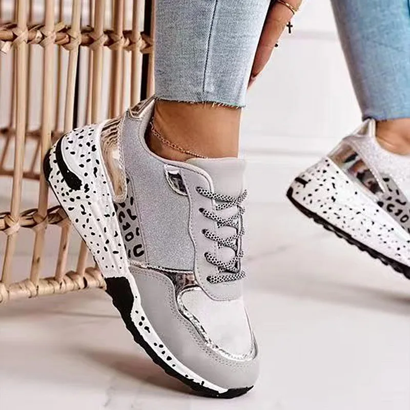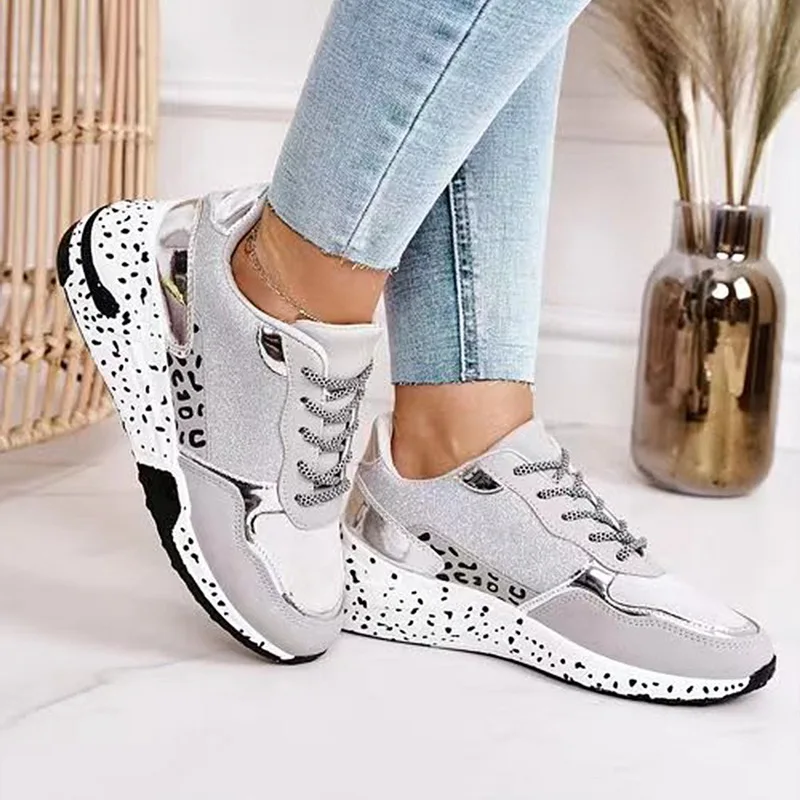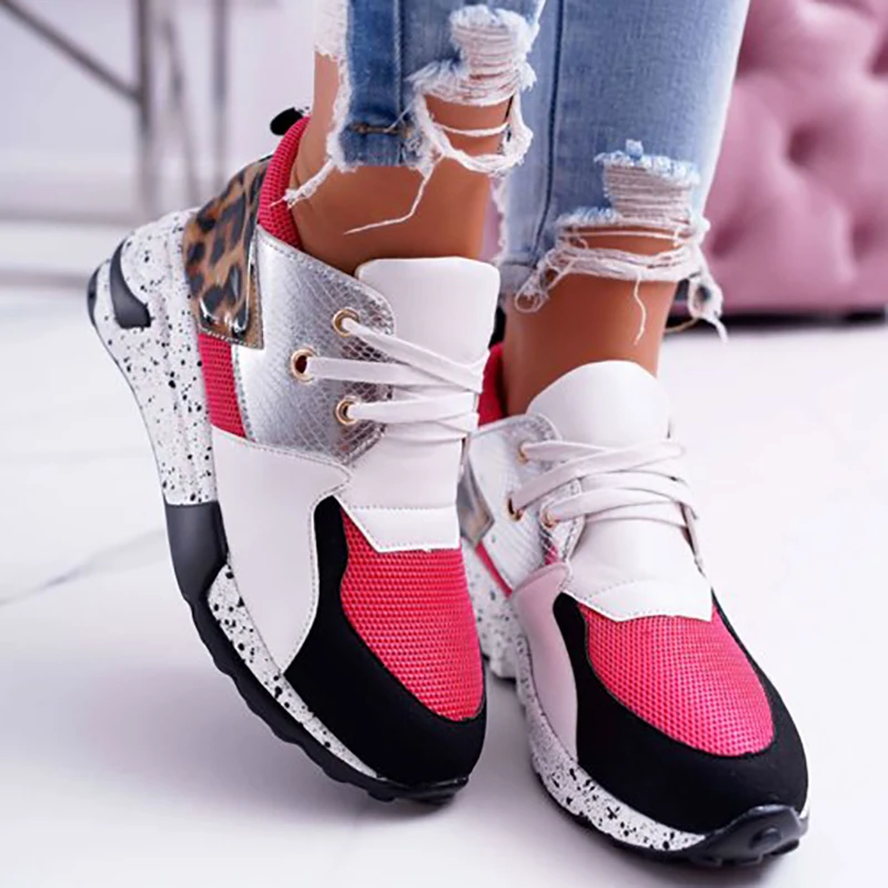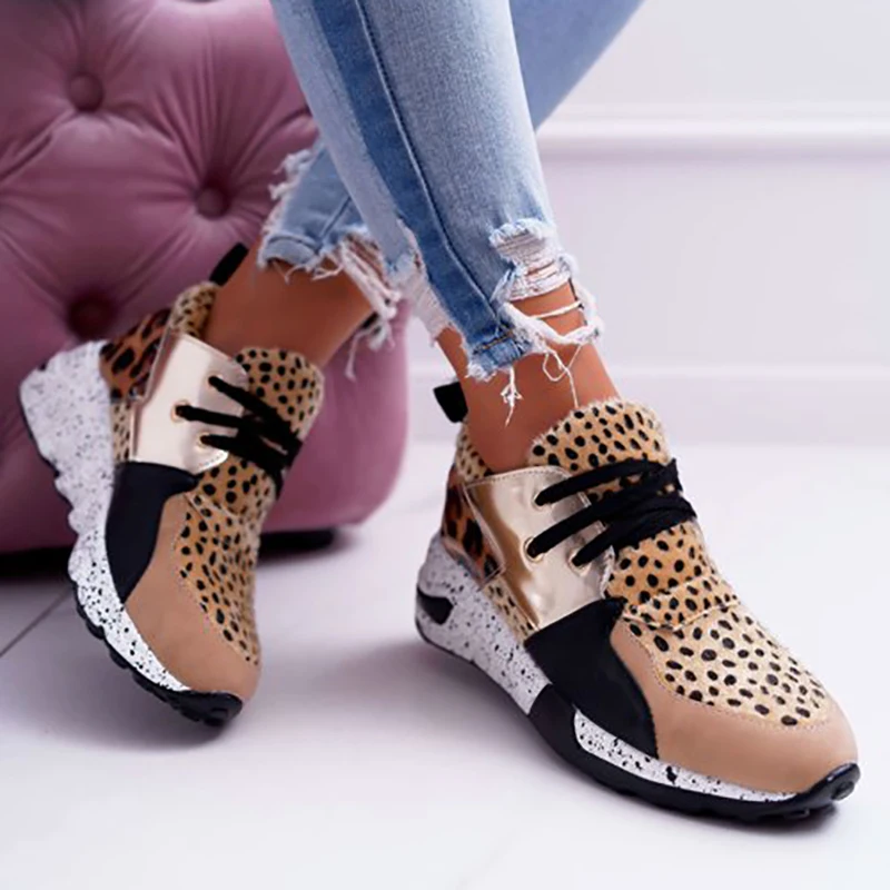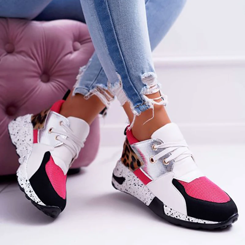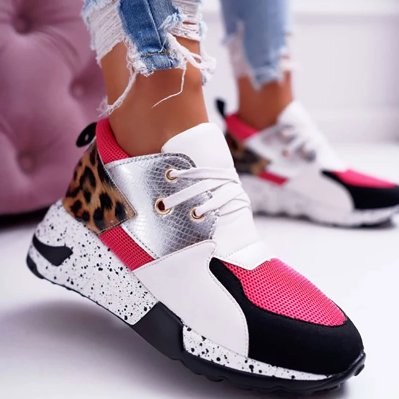 Кроссовки женские сетчатые для бега, Уличная обувь на платформе, плоская подошва, Леопардовый принт, дышащие, лето 2021