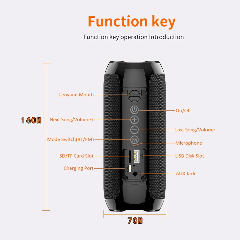 1. Размер: 160 мм * 68 мм * 68 мм2. Динамик примерно того же размера, что и ладонь, он очень подходит для переноски, и он также удобен, может использоваться в качестве портативной колонки.