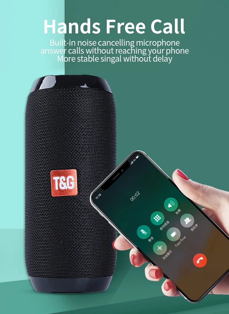 1. Цилиндрическая форма и встроенный левый и правый канал обеспечивают 360 ° стерео.2. Включите Bluetooth и нажмите TG117, чтобы успешно подключиться!