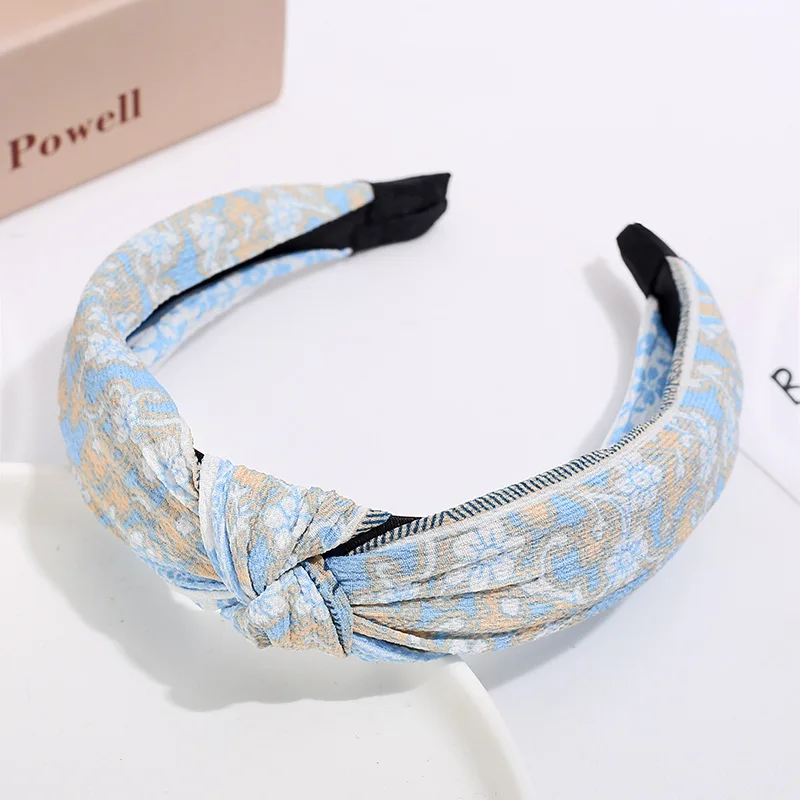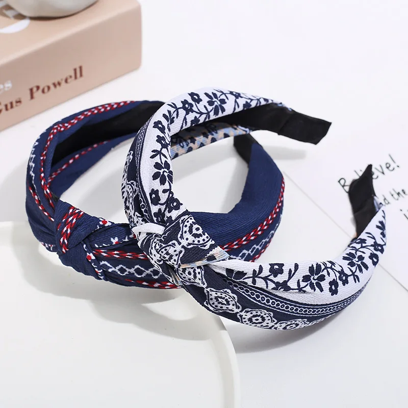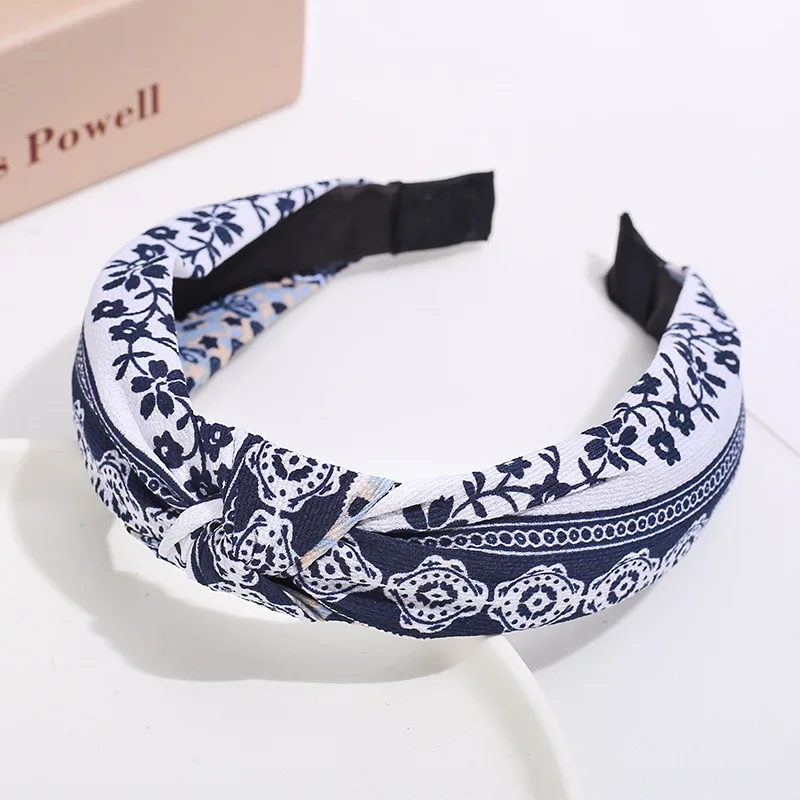 Обруч для волос женский с узлом, модный фарфоровый ободок с цветами, сине-белый, аксессуары для волос для девочек, FG109