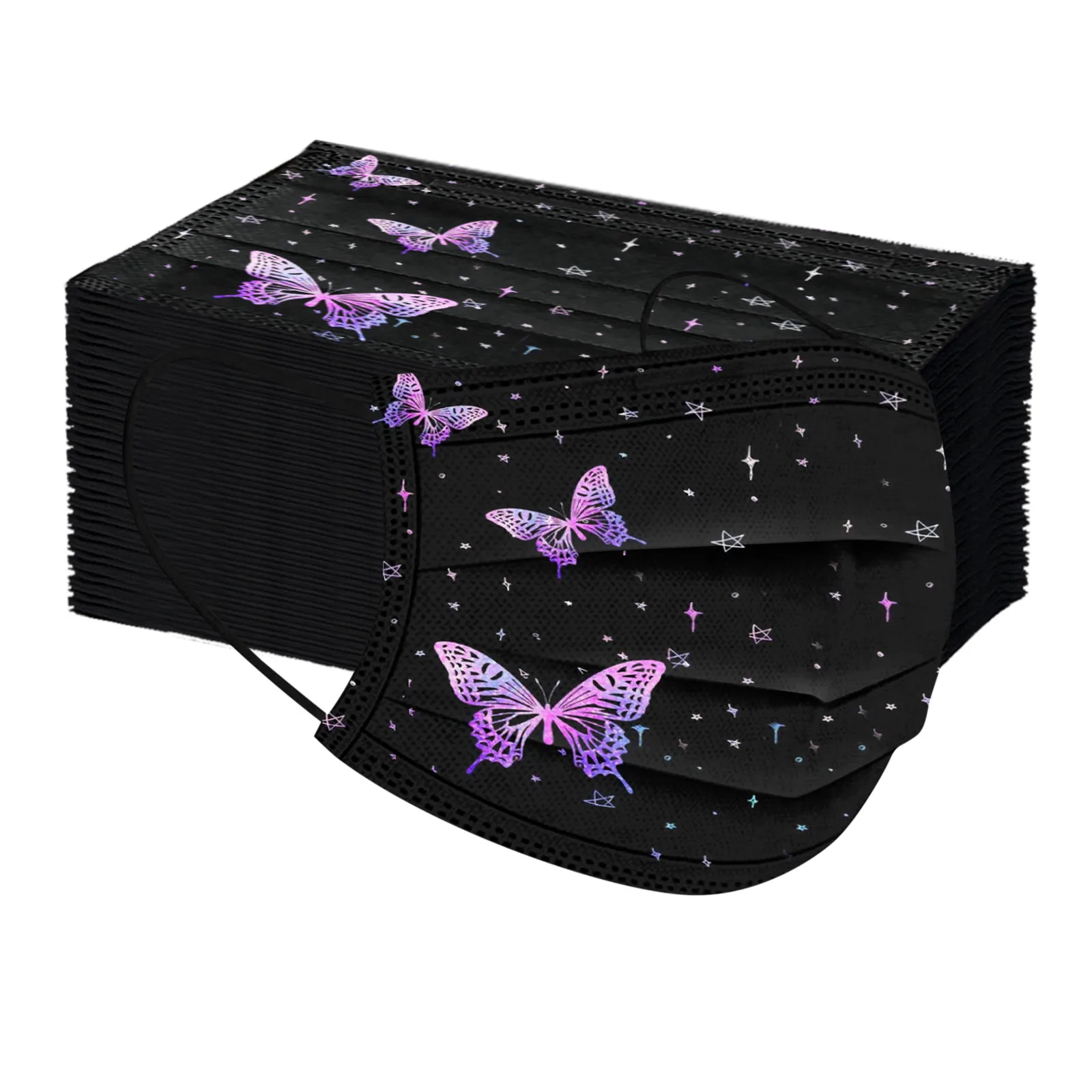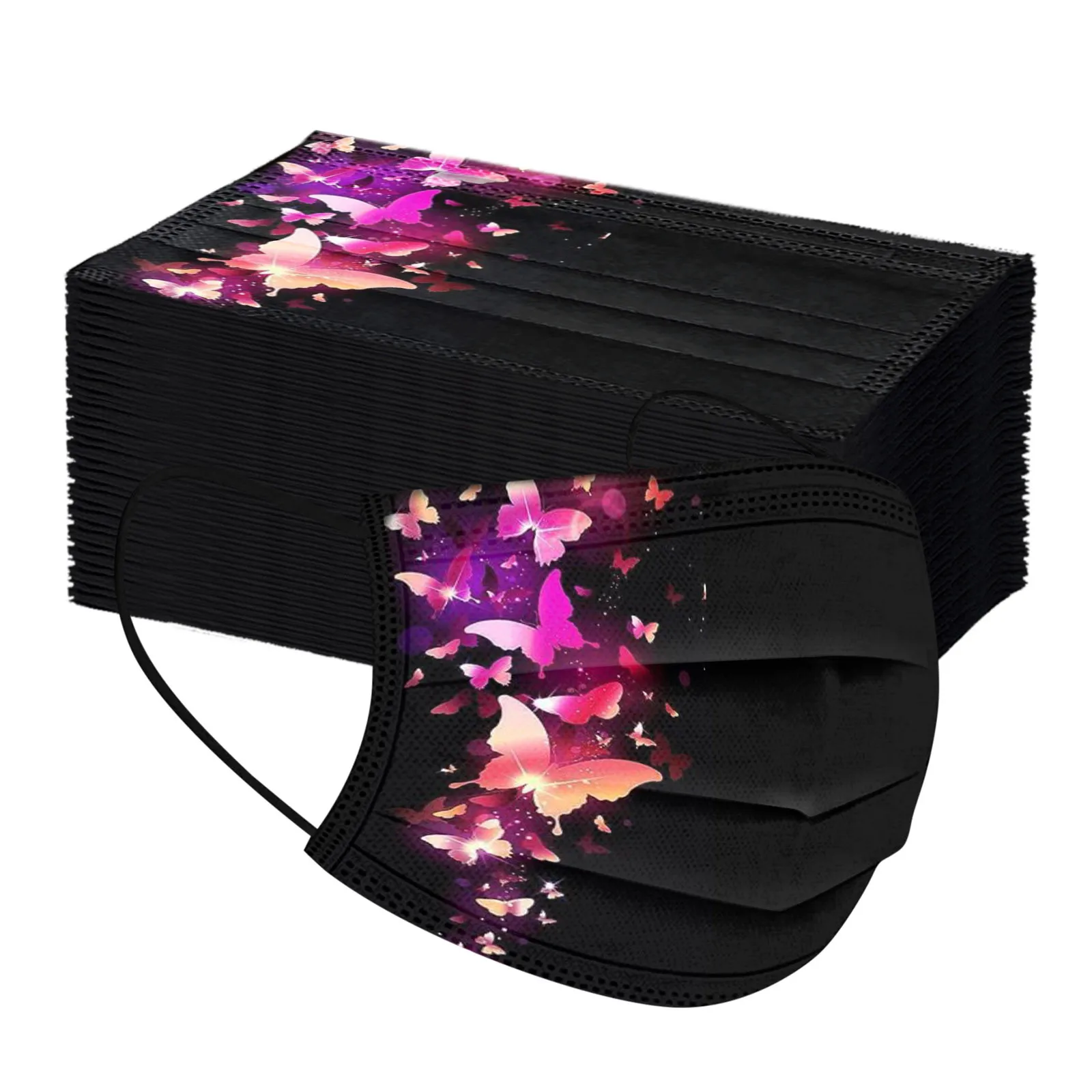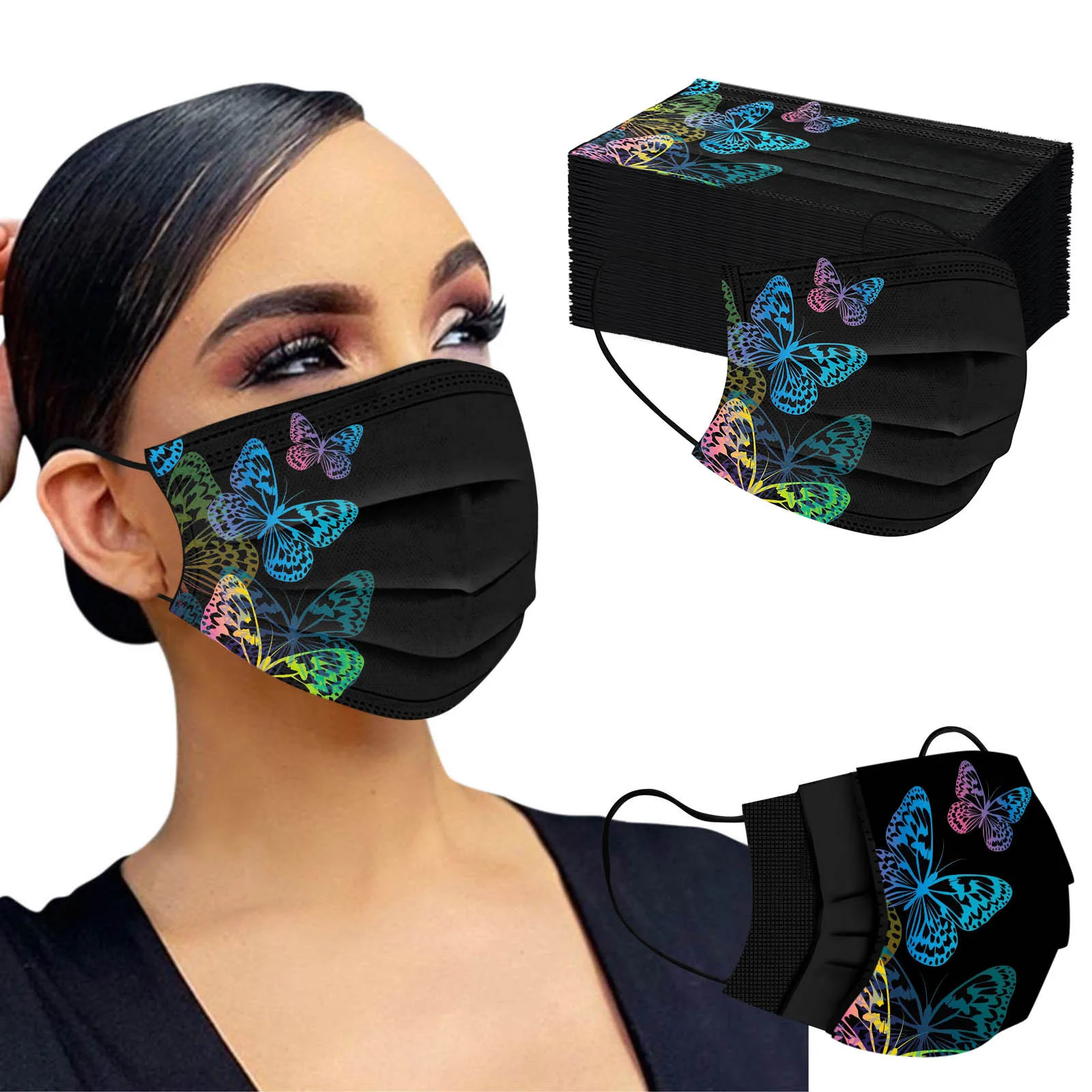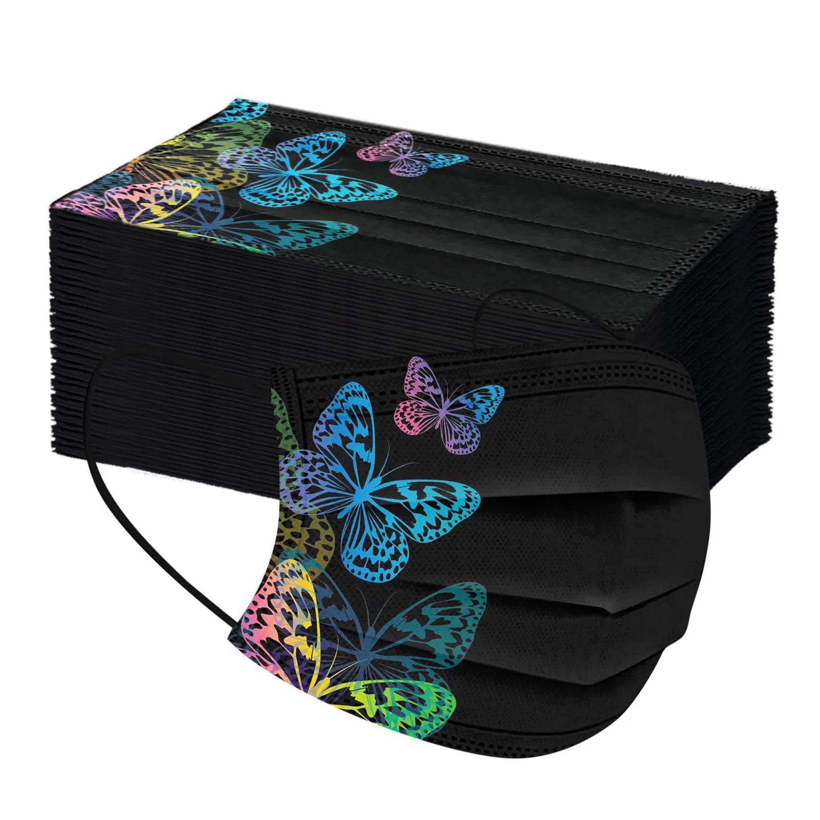 1050 шт. одноразовые нетканые 3-слойный фильтр маска с принтом бабочки для женщин и мужчин лицевая маска для взрослых дышащие черные туфли маски для лица
