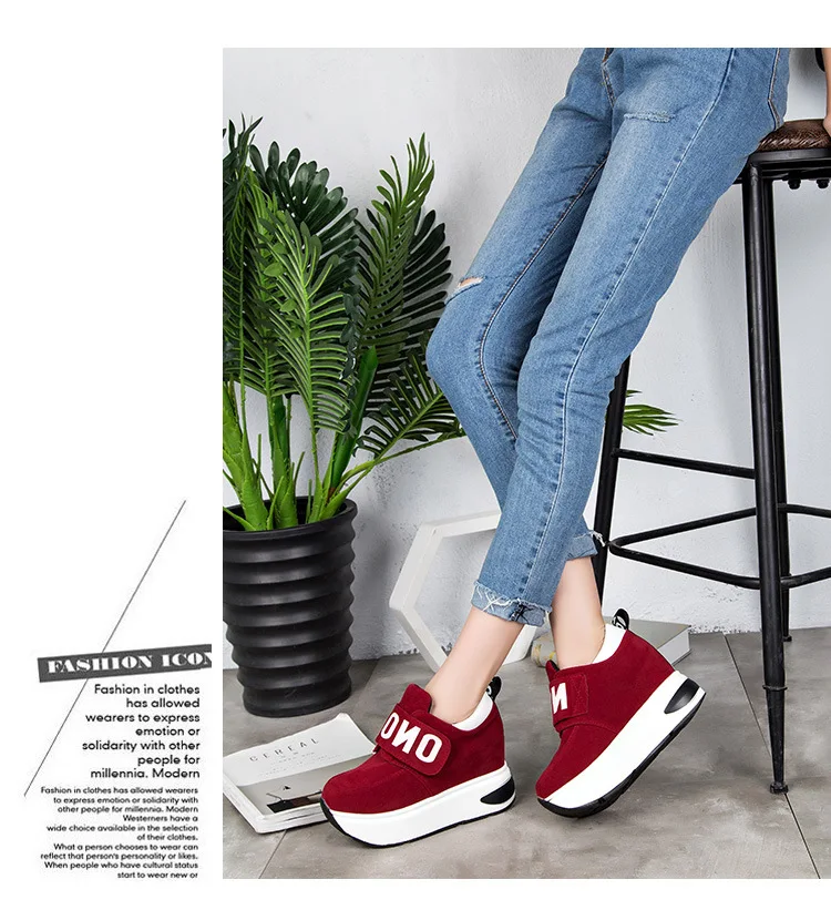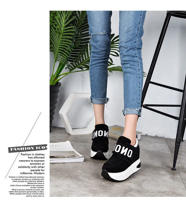 Новинка, весенне-осенняя женская обувь, универсальная дышащая повседневная спортивная обувь на липучке для увеличения роста ног