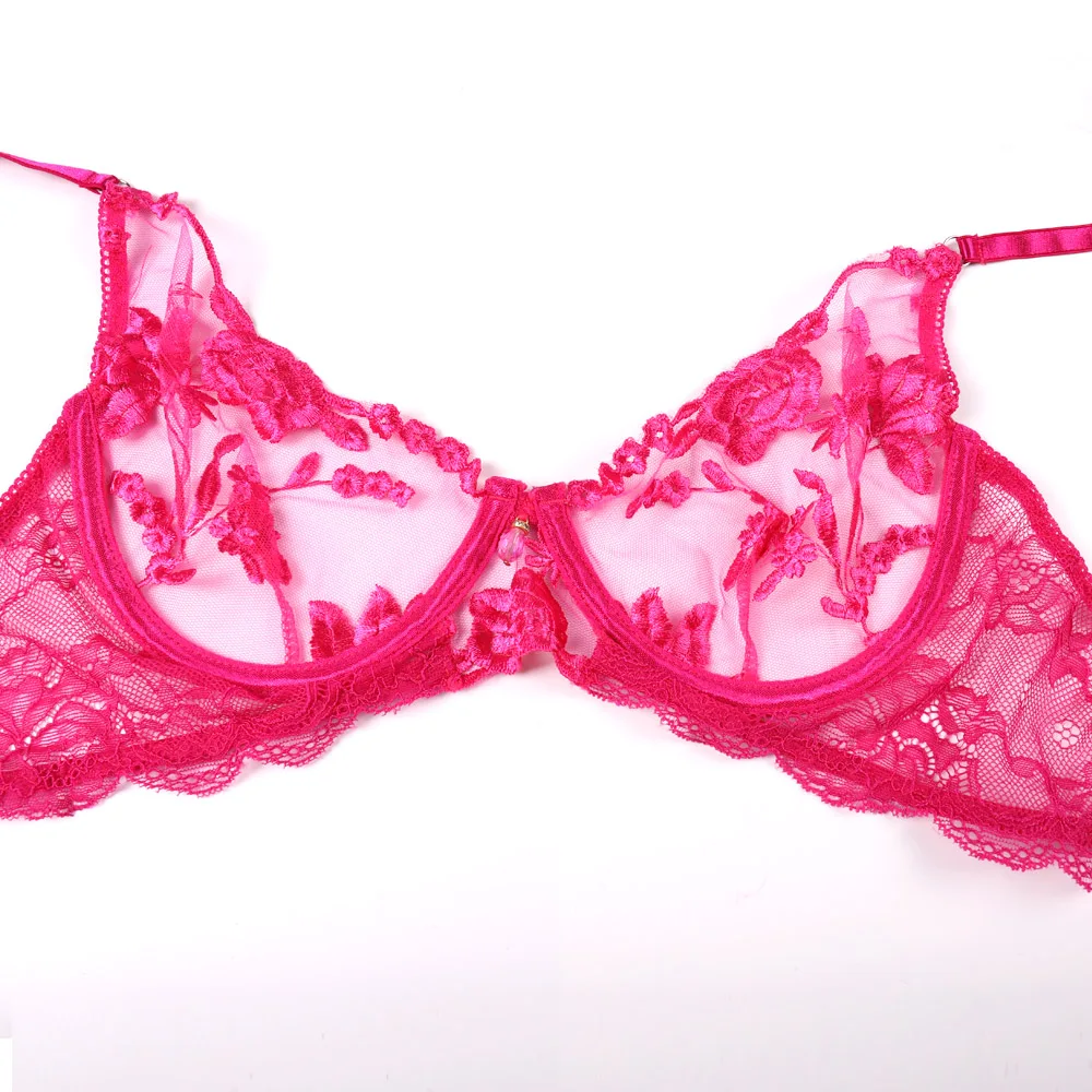 Женское сексуальное нижнее белье с вышивкой, прозрачные цветочные эротические костюмы, ажурный бюстгальтер и стринги, 3 шт., экзотические косточки