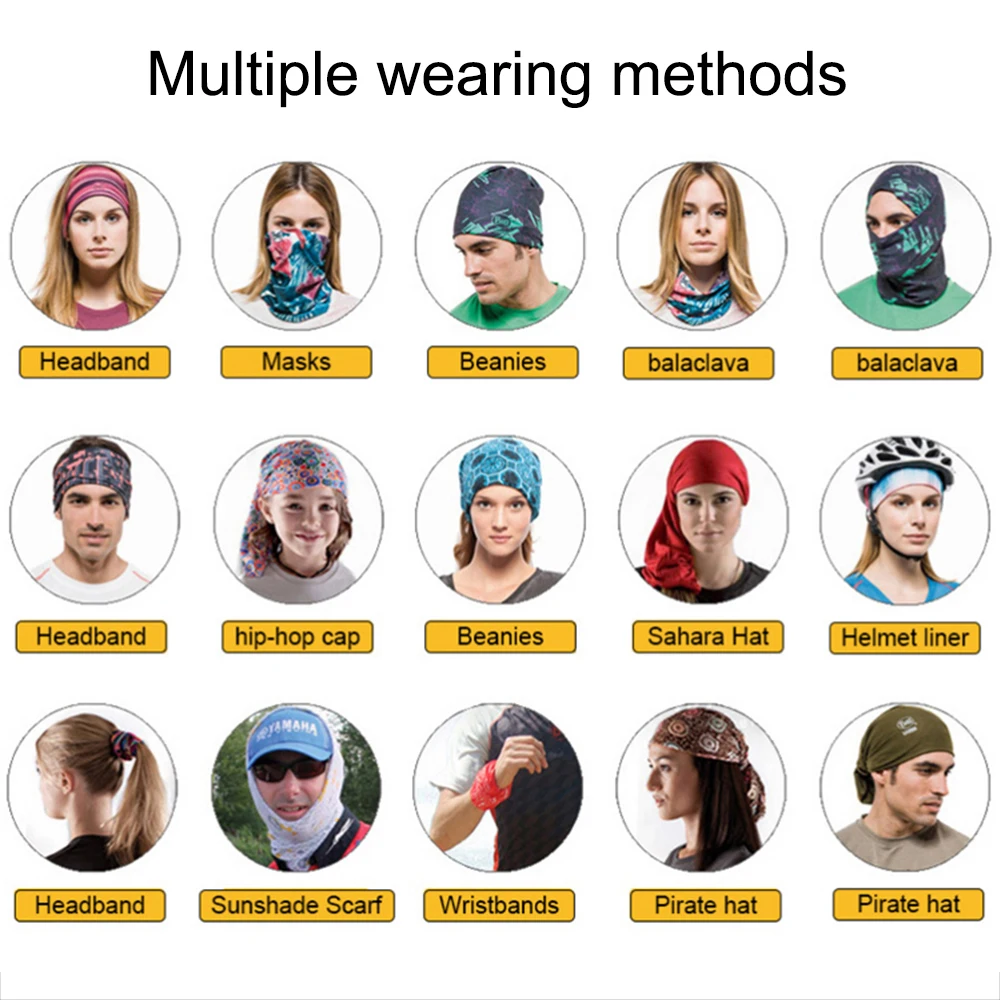 Может использоваться как бандана, шарф, головной убор, чехол для лица, шейный платок, повязка на голову, браслет, подкладка шлема и т. д.