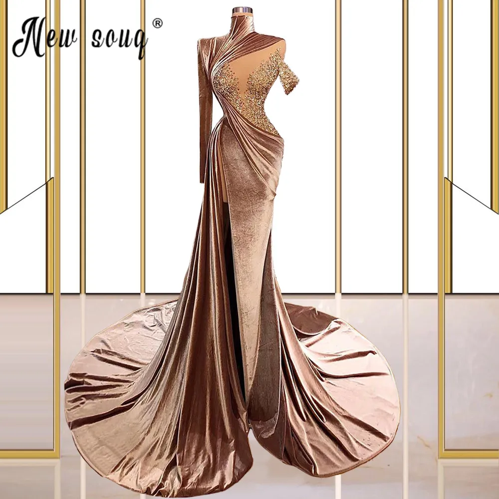 Женское вечернее платье-русалка, платье цвета шампанского с рукавом...