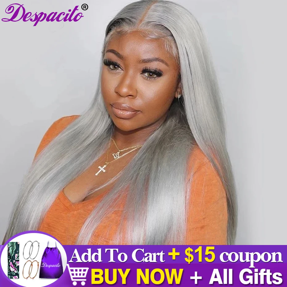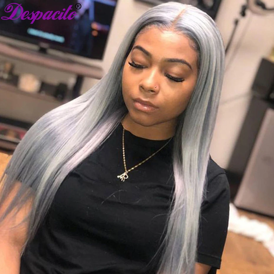 Серебристо-серые цветные T-образные передние парики из человеческих волос на сетке, прямые предварительно выщипанные 13x4x 1, передний парик на сетке, серые парики Remy, парики на продажу