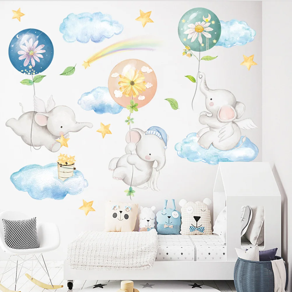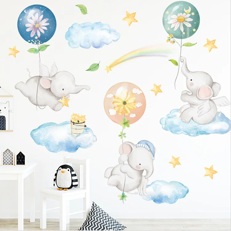 Мультяшные воздушные шары наклейки на стену в виде слона детская комната детская спальня фон украшение Мультяшные животные обои домашний декор наклейка