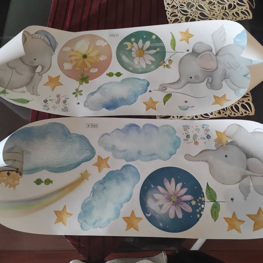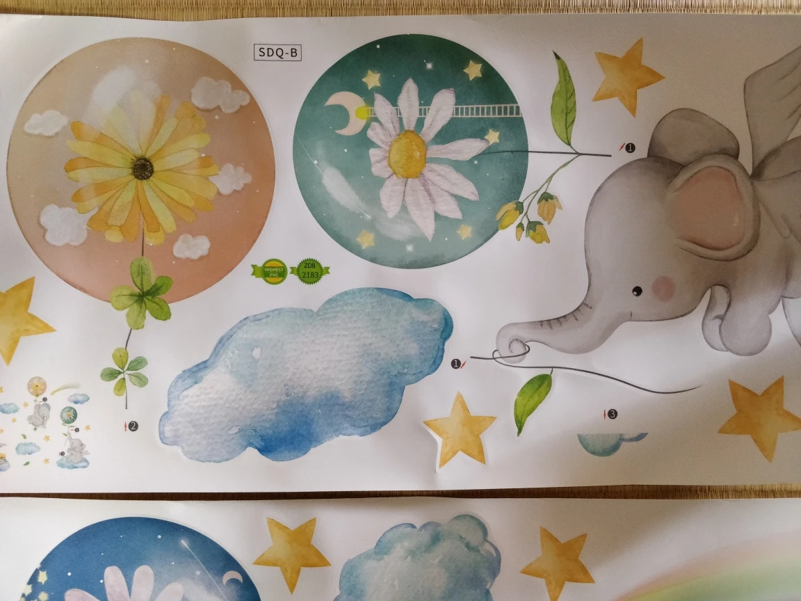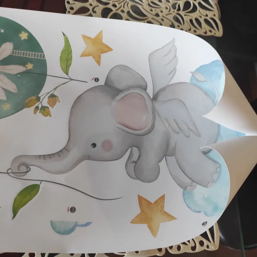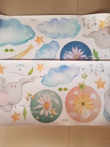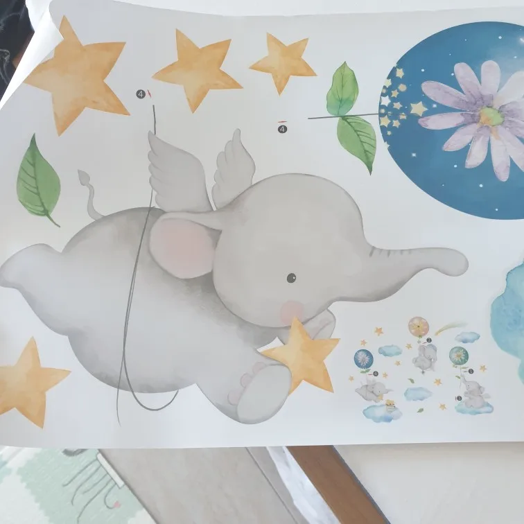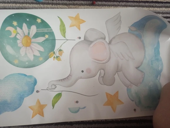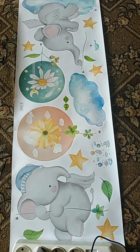 Наклейки на стену в виде слона милые и дополняют декор детской комнаты! Клей хорошо держится. Наклейки легко снимаются с бумажной подложки. Нумерация изображений облегчает сложение узора. Быстрая доставка. Продукт выигран на EnergyLab за $0,01. Я рекомендую этот товар и продавцу.