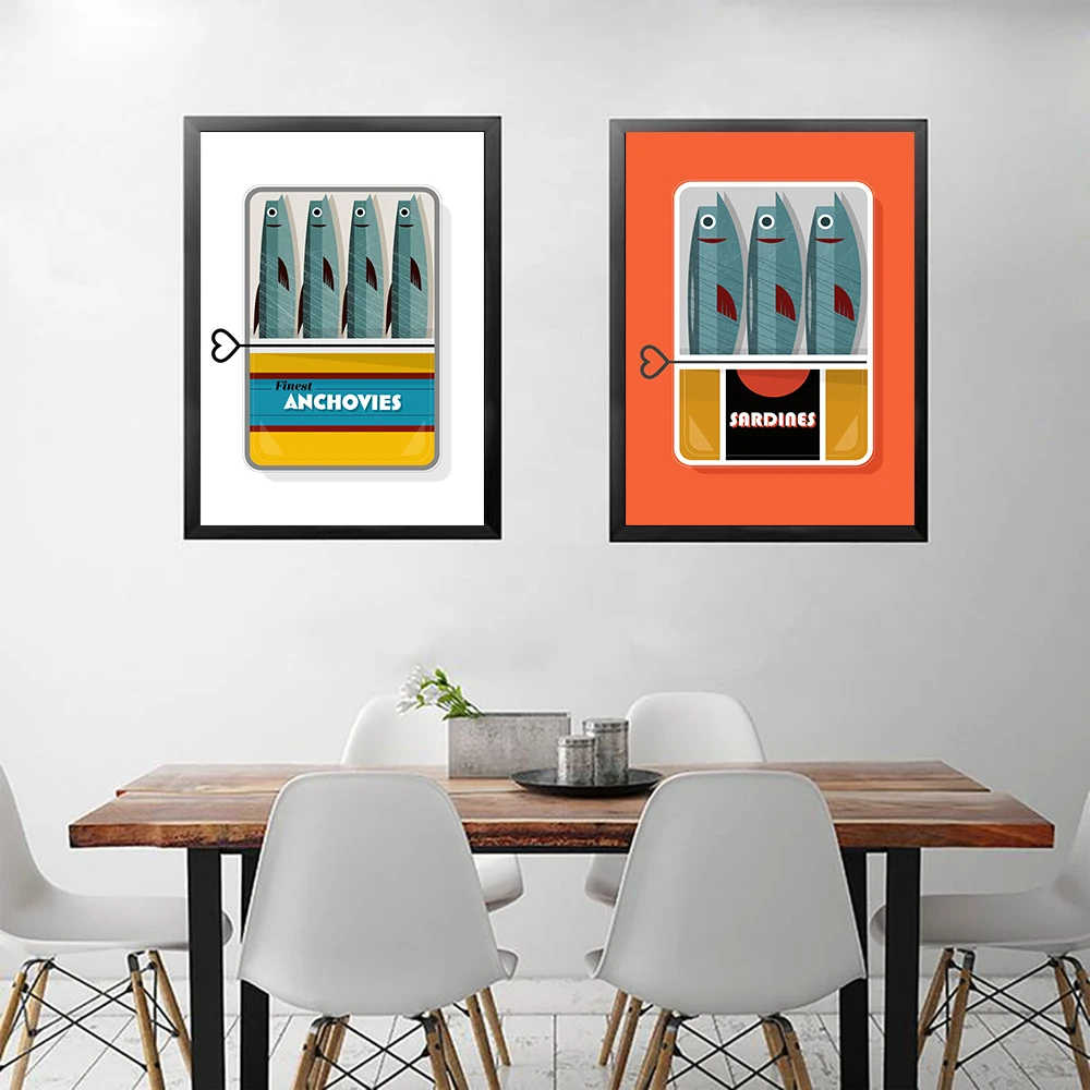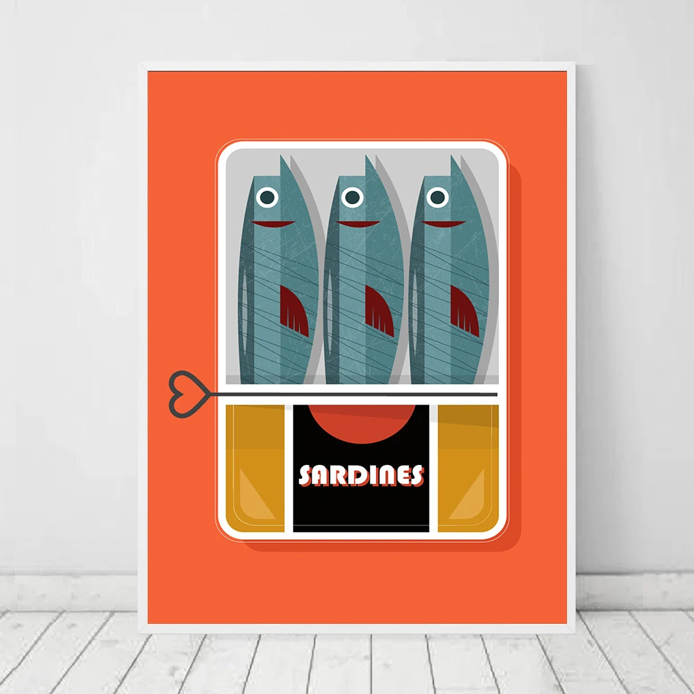 Консервированные сардины, постер с иллюстрированной печатью, классическая печать сканни-еды-минималистическое искусство-винтажный постер, украшение для дома