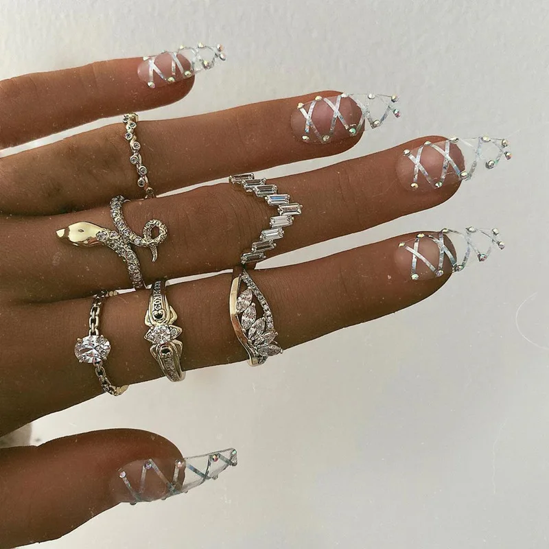 DIEZI 11 шт.компл. цветок крест костяшки капли воды, кольца, набор ...