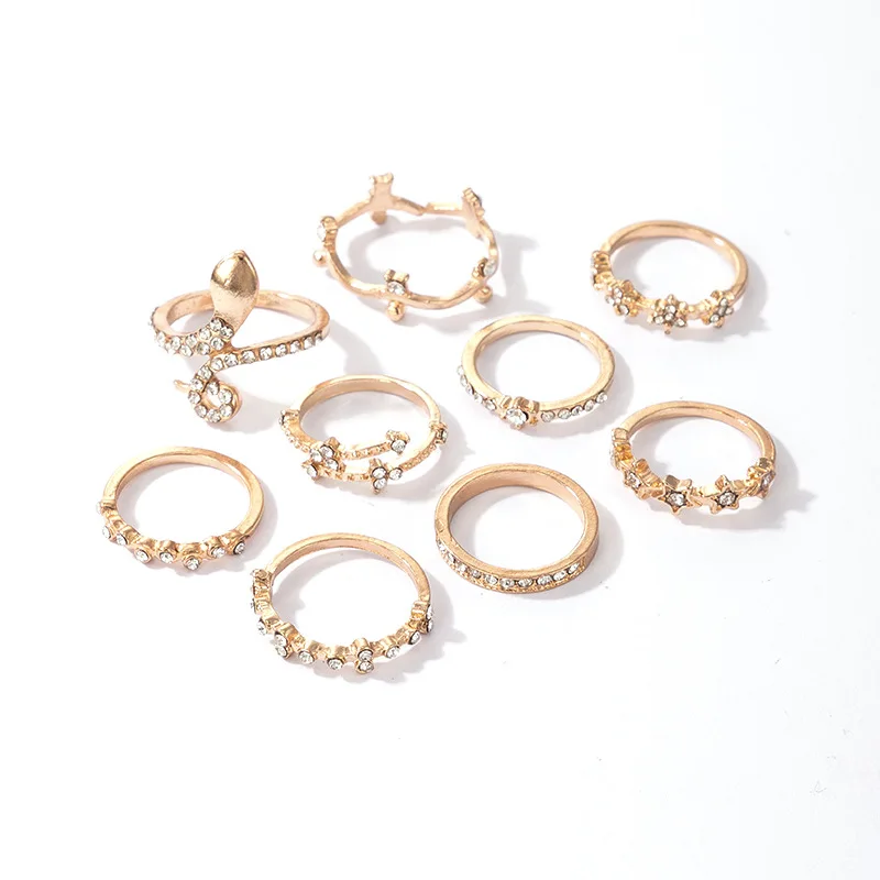 Набор колец в стиле панк и змея для женщин, Дизайнерские комплекты колец для девушек, сердце, звезды, золотые аксессуары, бижутерия