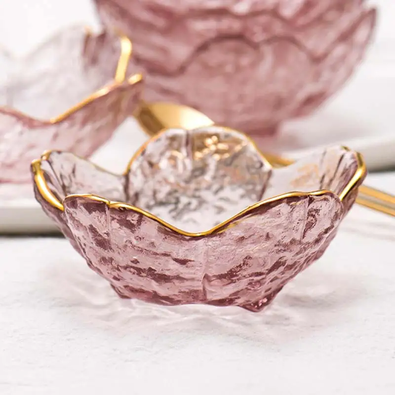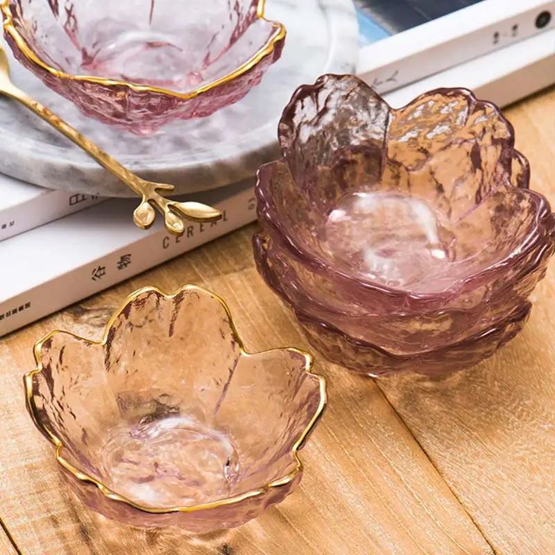 Стеклянная посуда с вишней, инкрустированная золотом, Бытовая Посуда, блюдо для приправ, в скандинавском стиле, стеклянная миска с золотой инкрустацией для соуса, маленькие Соусники