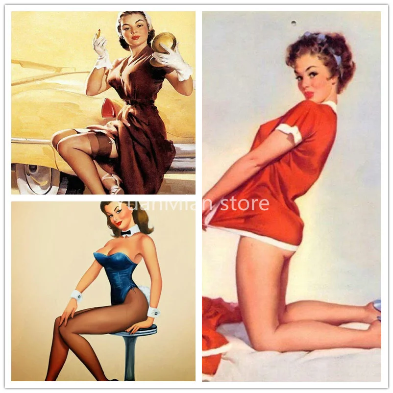 Алмазная живопись сделай сам, ретро постер, девушка 5D, алмазная вышивка, полная квадратнаяКруглая Мозаика, картина стразы, вышивка крестиком, ремесла