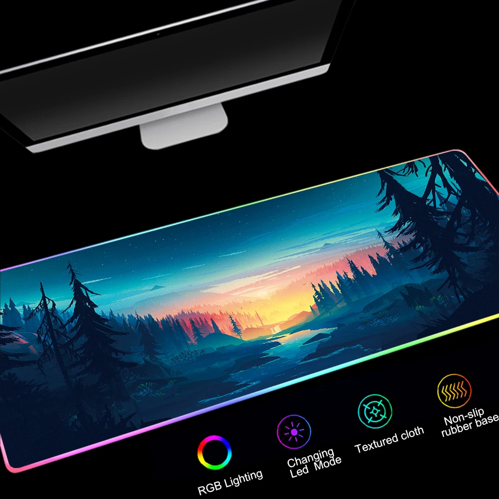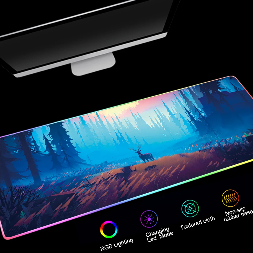 Большой игровой коврик для мыши с RGB-подсветкой, разноцветный геймерский коврик для мыши с закругленными краями 80x30 см, Противоскользящий Резиновый Защитный Настольный коврик