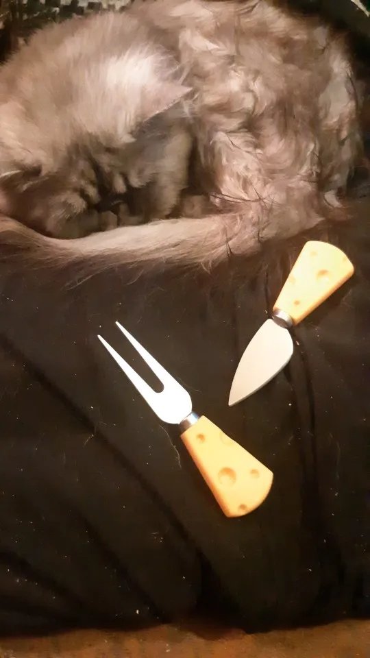 2. Нож и вилка в форме сыра, материал из нержавеющей стали, удобный на ощупь.