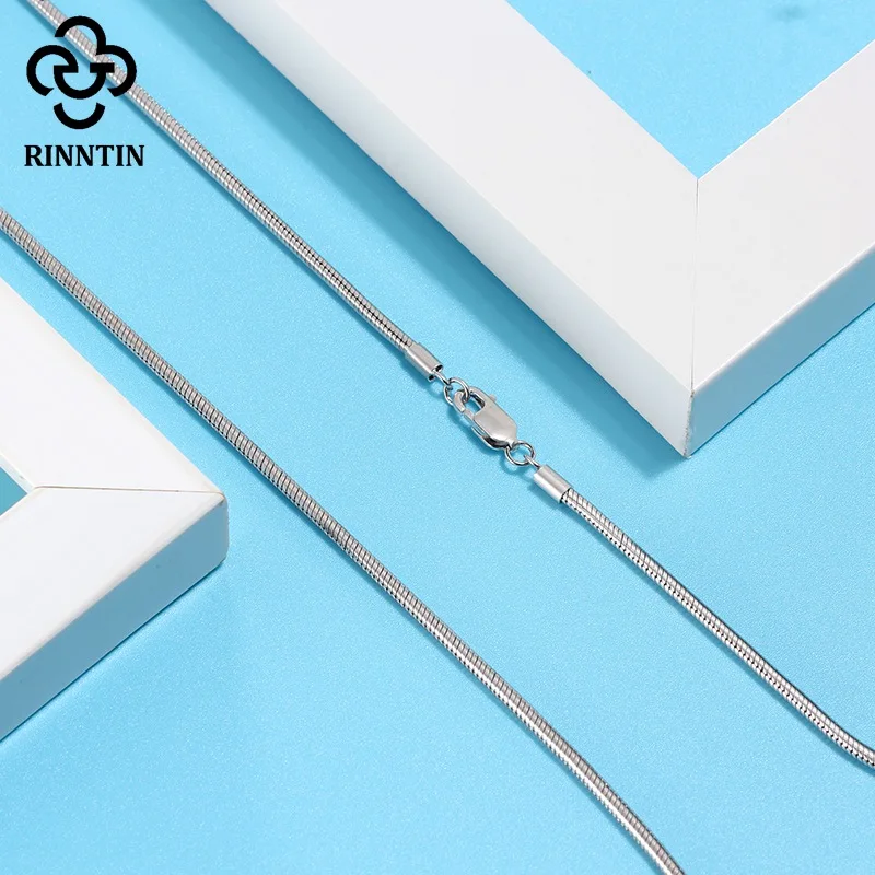 Rinntin 925 стерлингового серебра 1,5 мм круглая цепочка-змейка, роскошное ожерелье для мужчин и женщин, цепочка, ювелирное изделие, подарок на день Святого Валентина SC30