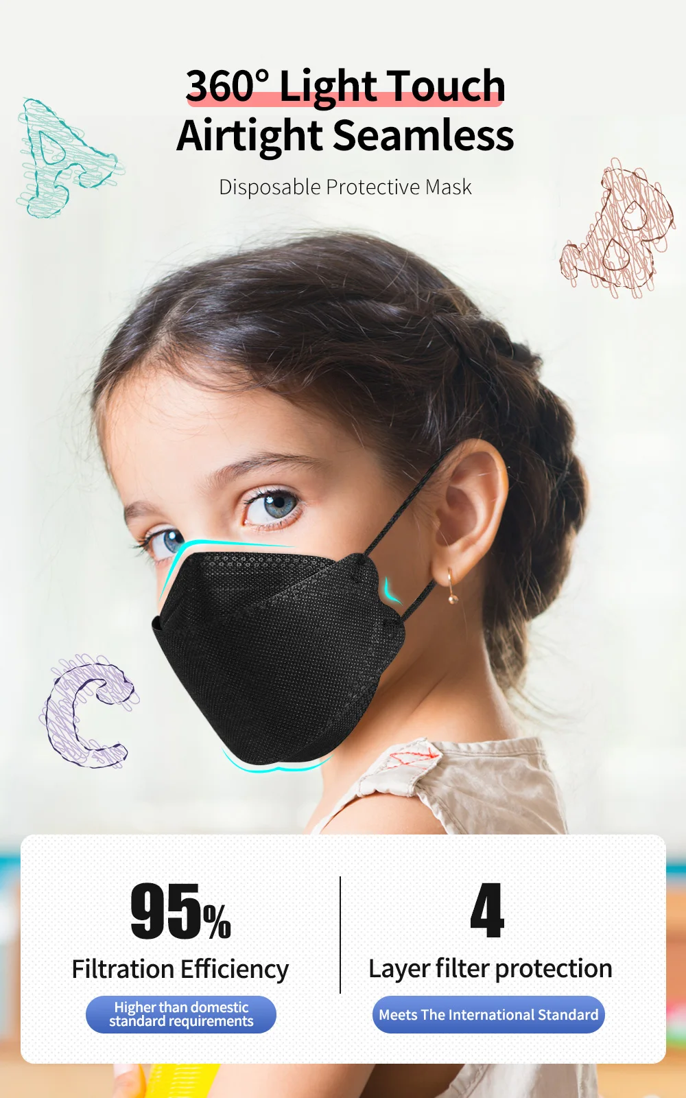 От 6 до 12 лет детская маска FFP2 детей KN95 5 слоев маска для лица для маленьких мальчиков и девочек респиратор маски для лица, рта CE FFP3 маска 10-100 шт.