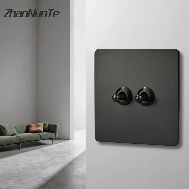 Черный латунь рычаг стены тумблер 1-4 года Gang 2 Way Нержавеющаясталь Панель настенный светильник выключатель ЕС разъем