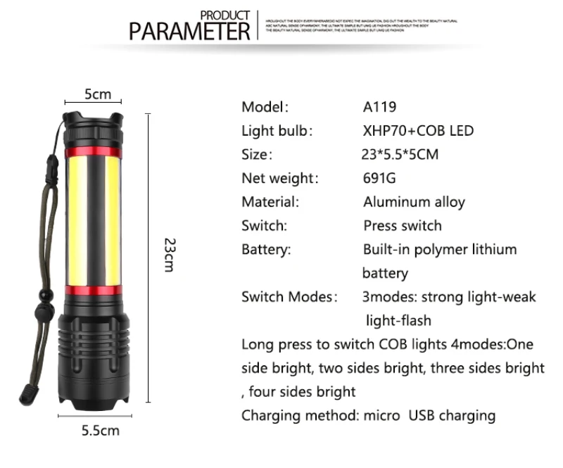 Длительное нажатие для переключения COB 4 файлов: одна сторона яркая-две стороны яркая-три стороны яркая-четыре стороны яркая