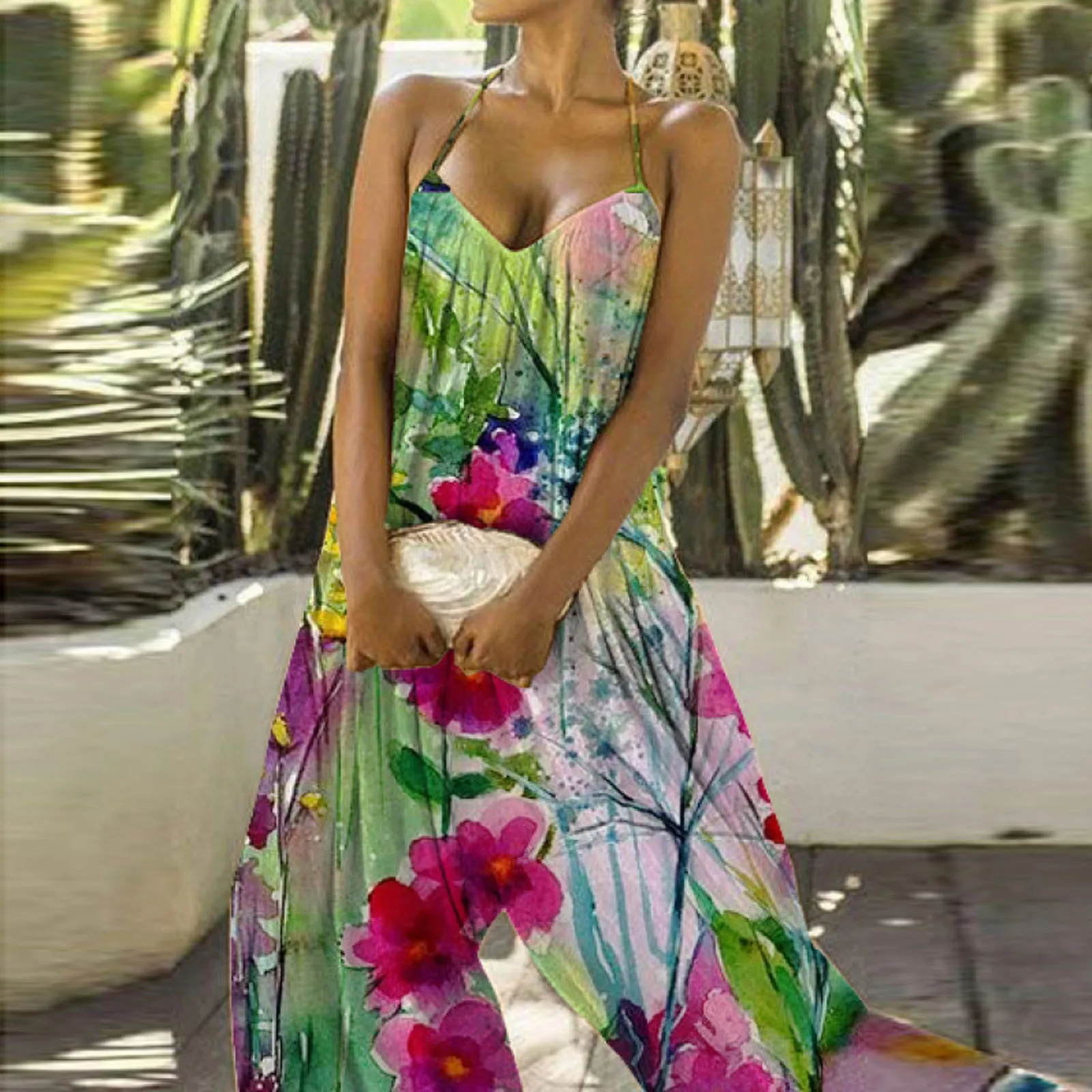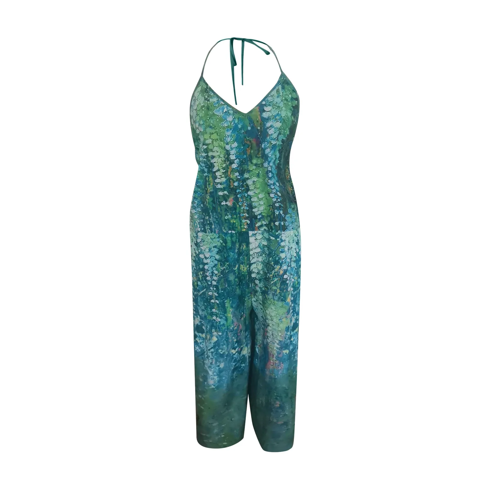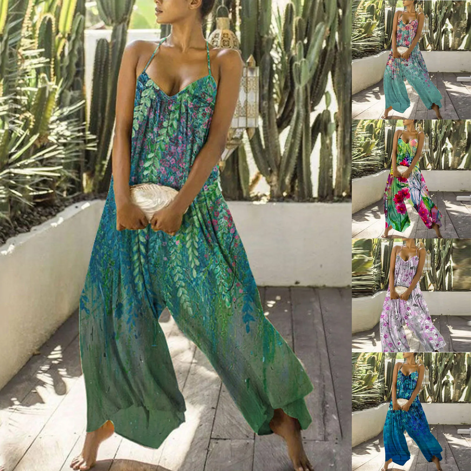 SAGACE женские туфли на каблуках; Туфли без рукавов повседневное Цветочный принт элегантное платье с v-образным вырезом в стиле Бохо С Лямкой на шее с широкими штанинами с низким вырезом на спине спортивный комбинезон