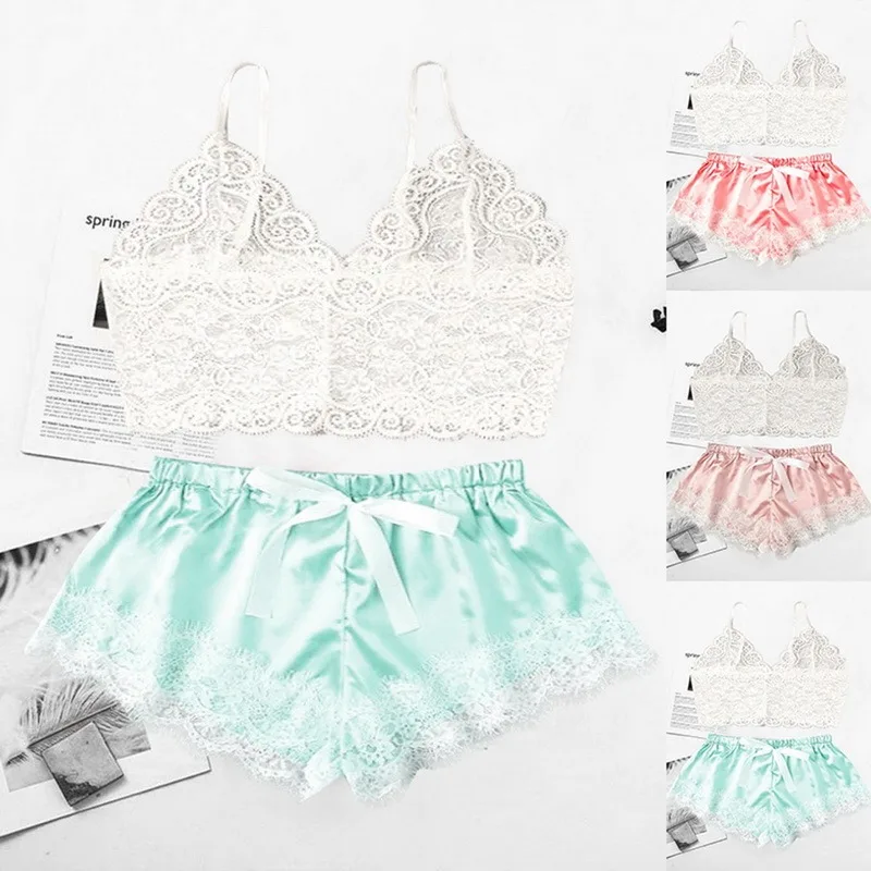 Женская одежда для сна сексуальное дамское белье, атласное кружевное платье с v-образным вырезом камзол шорты комплект пижамы, ночное белье для женщин сексуальная одежда для сна Детская одежда пижама