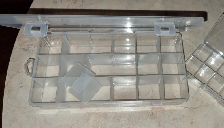 Это действительно хорошие коробки для драгоценных камней, чтобы сортировать, но также для жемчуга. Они очень хорошо закрывают единственную вещь, жаль, что между распределениями очень свободно и очень легко подошло выше