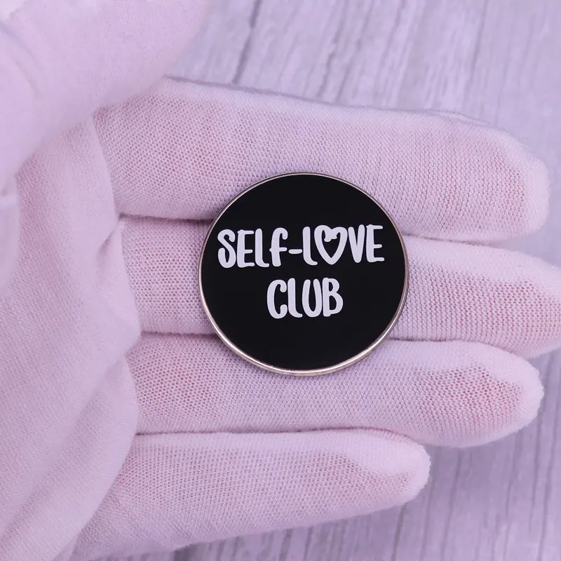 Эмалированная булавка для клуба Self-Love, Мотивационная брошь с положительным умственным здоровьем, черная круглая нашивка, подарок для красивых душ, ее