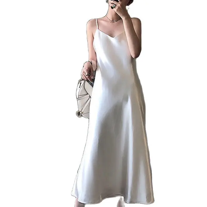 Платье женское атласное, Модное Длинное мягкое гладкое размера плюс, S-3XL, на лето