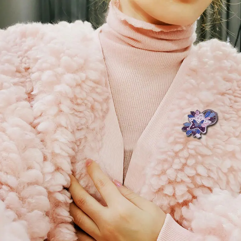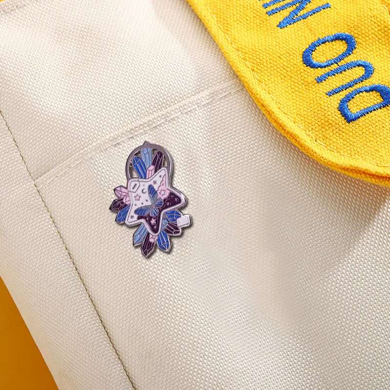 Брошь с радужным кристаллом и бабочкой, эмалированная заколка, фэнтезийная Звездная Галактика, значок, волшебный кристалл, исцеляющая сила, подарок