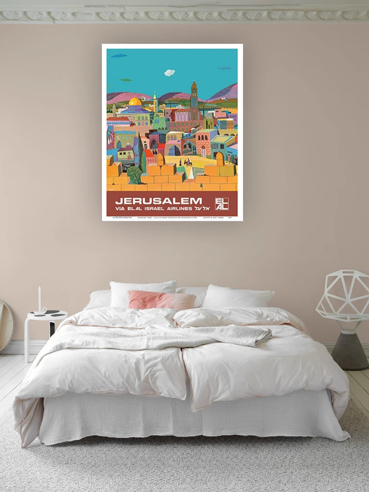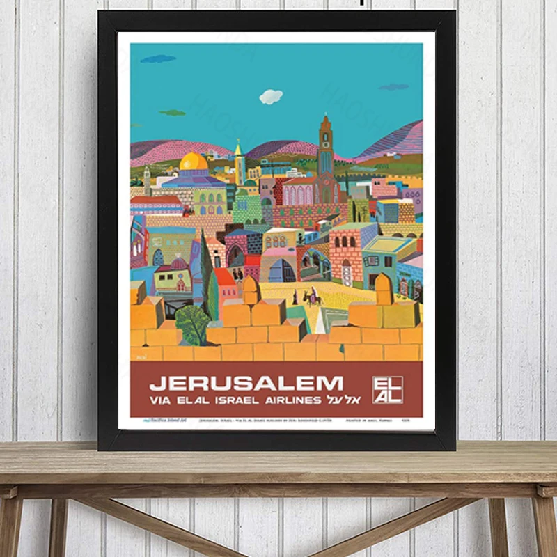 Постер с художественной печатью Peri Rosenfeld c.1970s-мастер с изображением jerusora, Израиль через El Al, авиалинии, винтажные авиалинии, путешествия