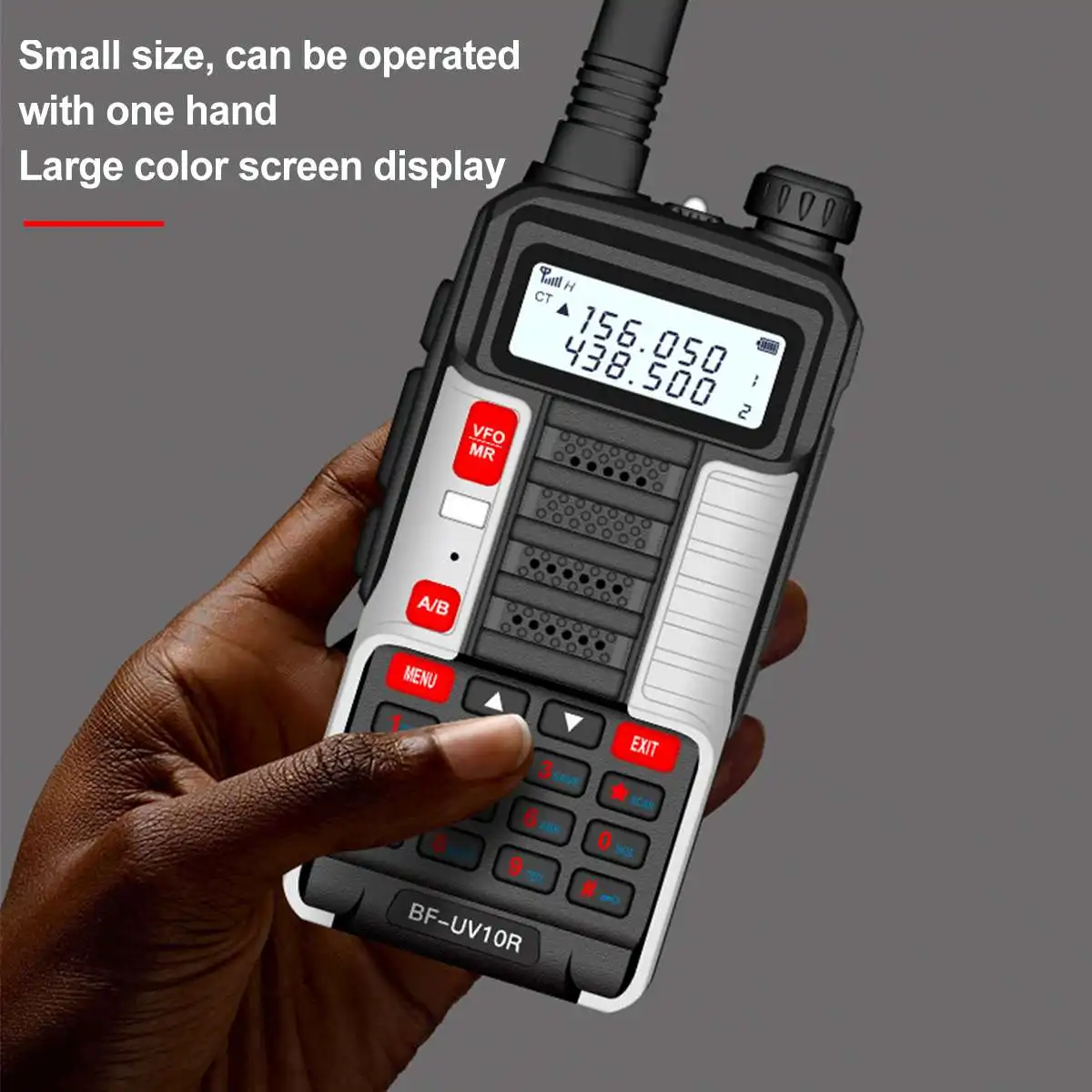 [Функция Baofeng UV 10R]:1. Диапазон частот: VHF130-176MHz,UHF400-520MH22. Двухчастотный дисплей, двухчастотный. Дисплей, двойной режим ожидания3. Выходная мощность: Высокая/высокая мощность4,128 каналов 50 CTCSS и 104 DCS5. Встроенная функция VOX6. Радио (65,0 МГц-108,0 МГц)7. Светодиодный фонарик8. Высокая/низкая мощность RF может быть свободно переключена9. Может быть переключен на 25 кГц/12,5 кГц10. Аварийная, автоматическая сигнализация11. Предупреждение о низком заряде батареи12. Осуществлять режим экономии энергии13. Таймер таймаута14. Блокировка клавиатуры15. Контрольный канал16. Канал Длина шага: 2,5/5/6.25/10/12.5/25 кГц17. Программируемое программное обеспечение для ПК18. Конвертер автомобильного зарядного устройства (не входит в стандартную конфигурацию)19.IP57 водонепроницаемый и пыленепроницаемый (без дайвинга).
