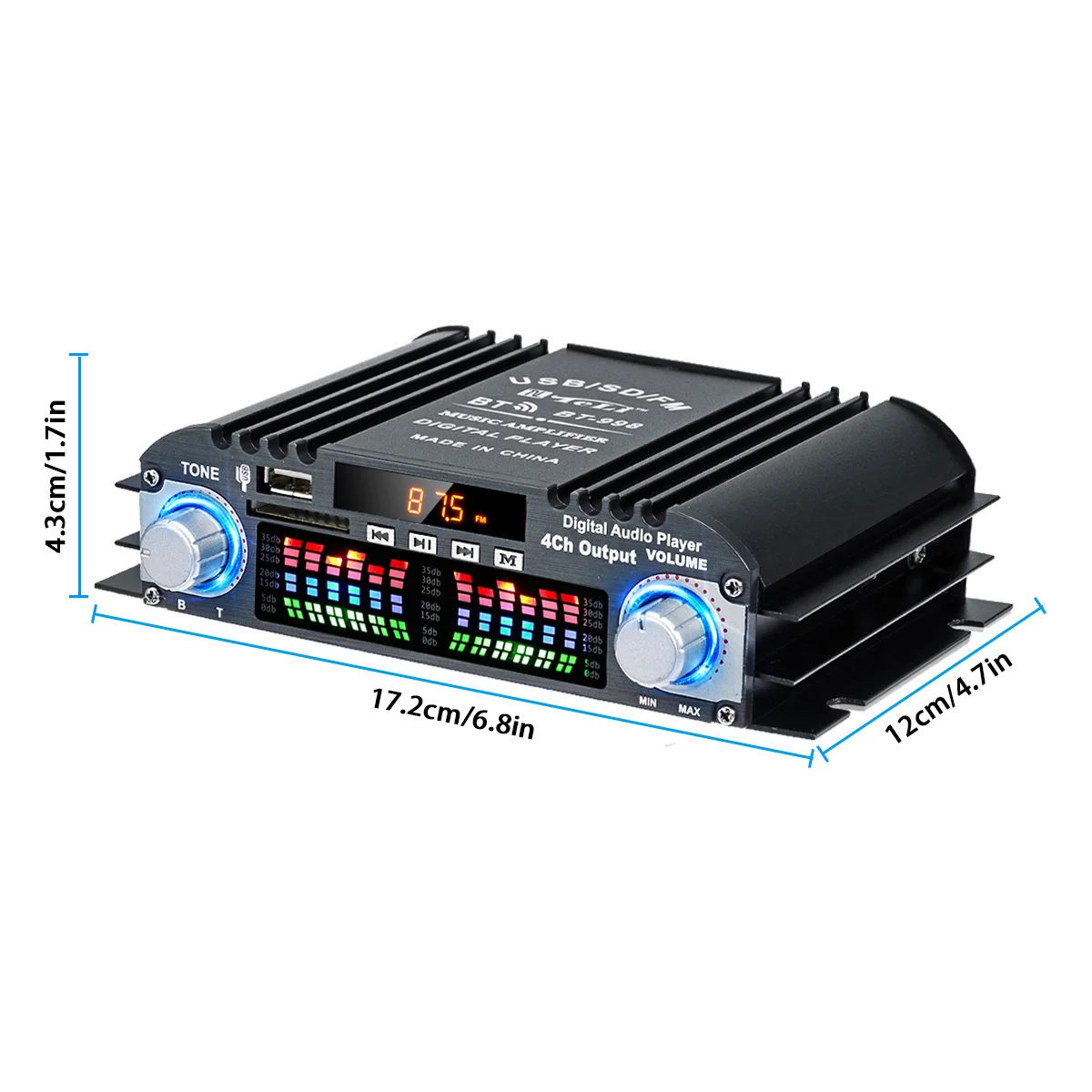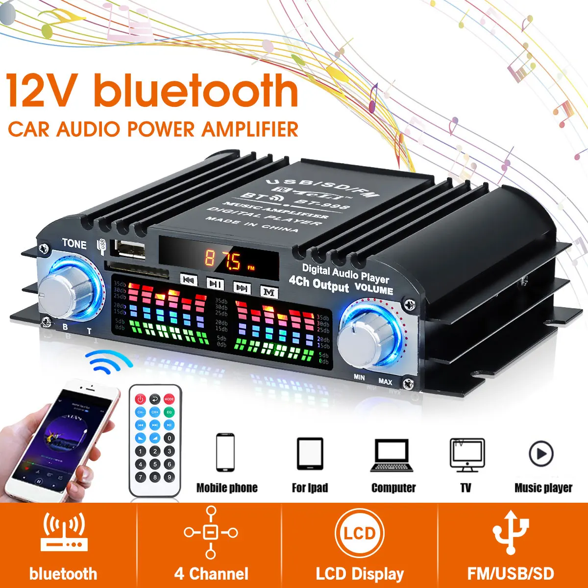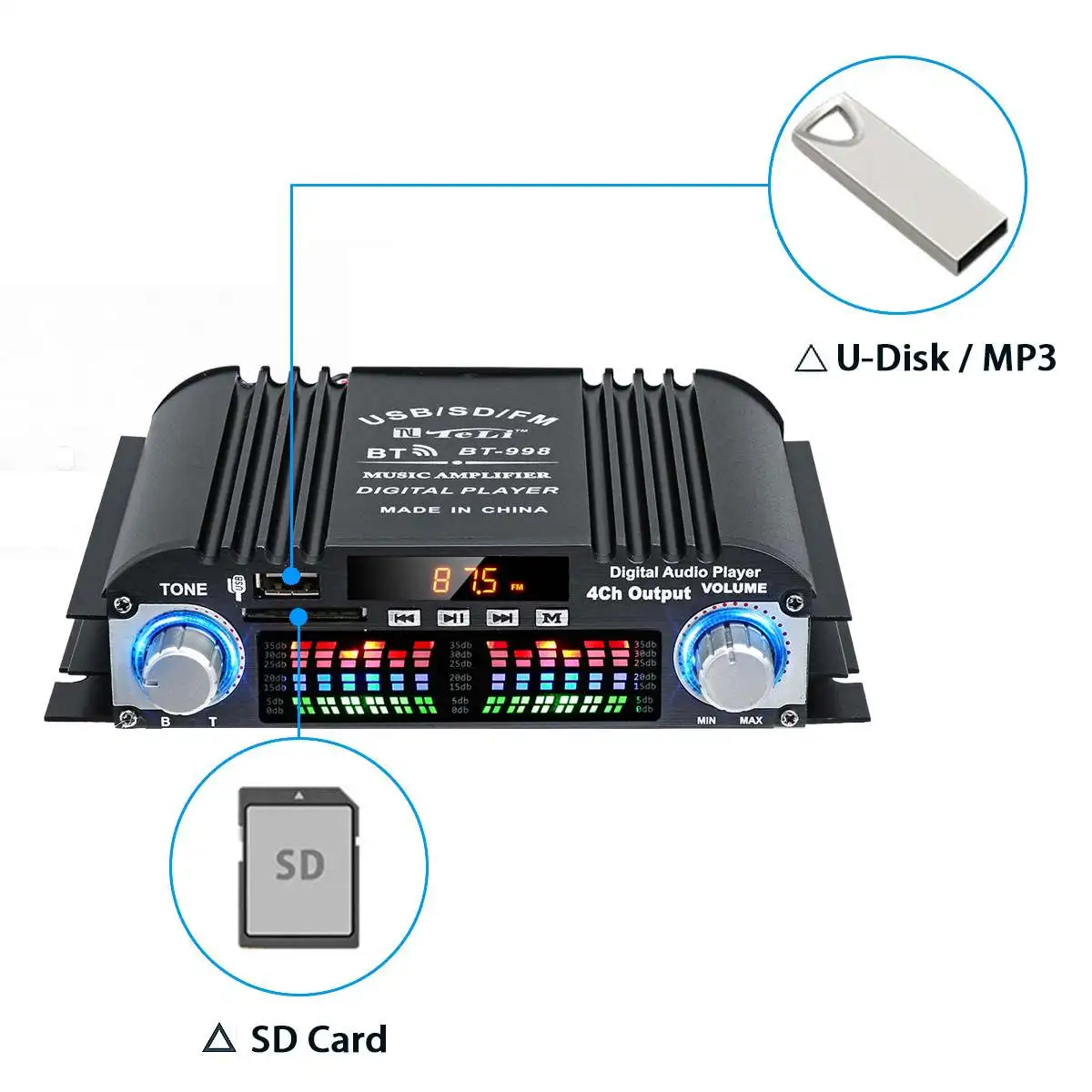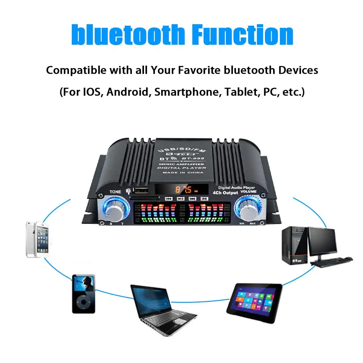 BT-998 Hifi аудио домашние Цифровые усилители автомобильное аудио бас мощность Bluetooth усилитель FM USB SD радио для сабвуфера динамики 12 В постоянного тока