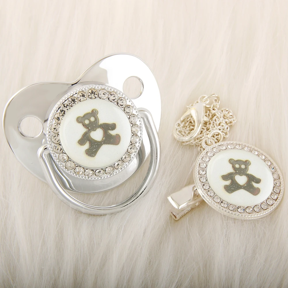 Блестящая Роскошная детская соска 0-12 месяцев, Серебряный медведь,...