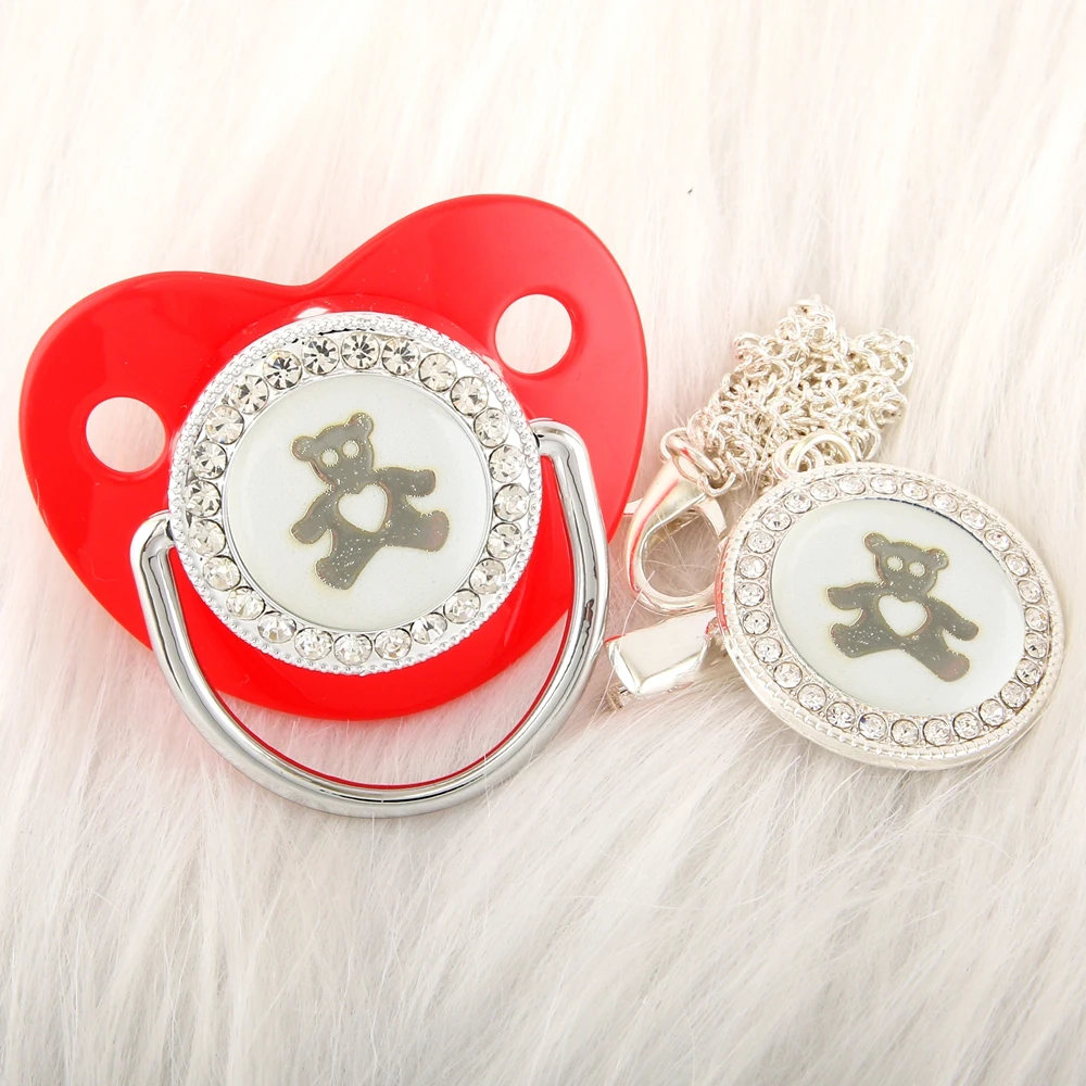 Шикарные роскошные стразы, Детская Соска с милым серебряным медведем, силиконовая Ортодонтическая Соска, соска для сна 0-18 месяцев