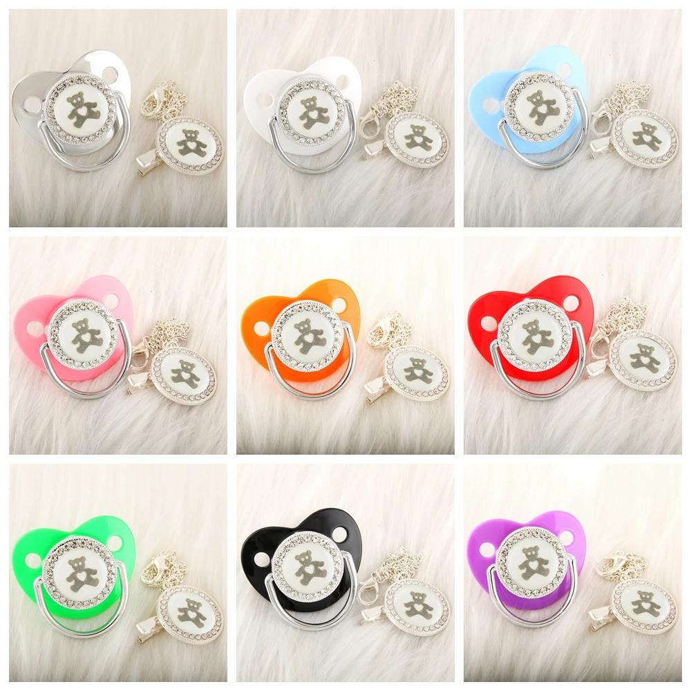 Персонализированные Имя Bling соски-пустышки с зажимом роскошный цв...