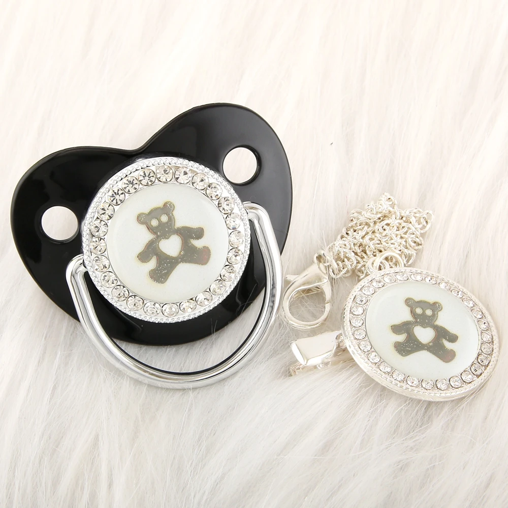 Роскошный черный детская пустышка на цепочке с прищепкой с Стразы н...