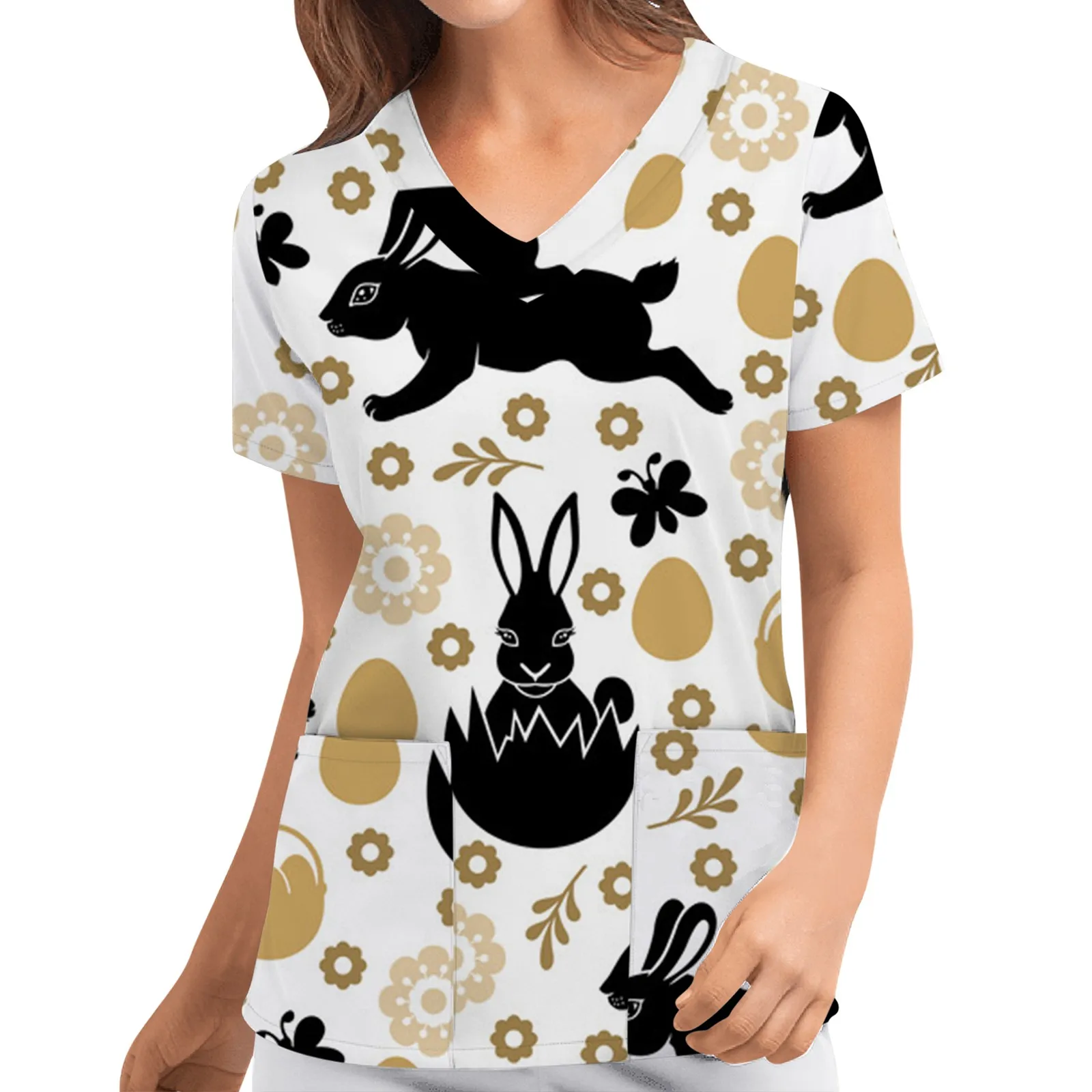 Женская одежда для кормления, модная медицинская Униформа с принтом кролика, клиническая Униформа с коротким рукавом, Женский Летний рабочий Топ для медсестры