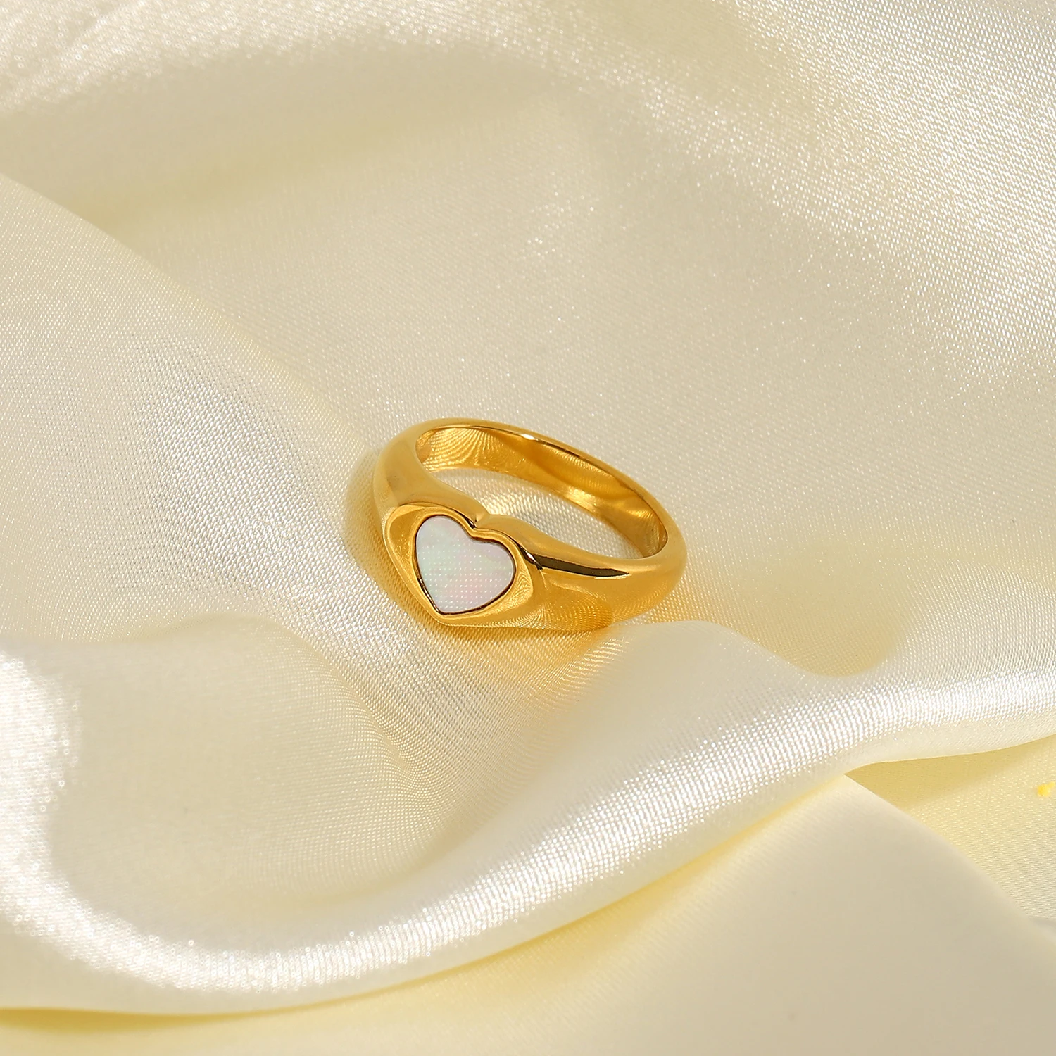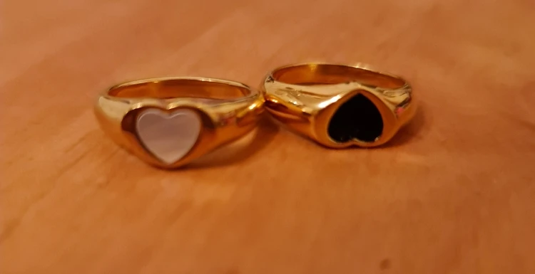 18K позолоченные 316L кольца из нержавеющей стали для женщин, черно-белые эпоксидные кольца в форме сердца, ювелирные аксессуары