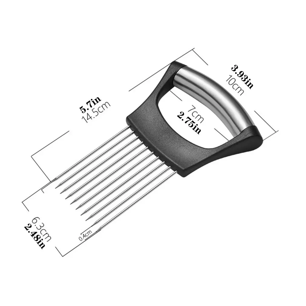 Этот режущий держатель для лука, изготовленный из нержавеющей стали 304, является прочным и может использоваться в качестве сломанного сухожилия и свободной игла для мяса и держателя для ломтиков.