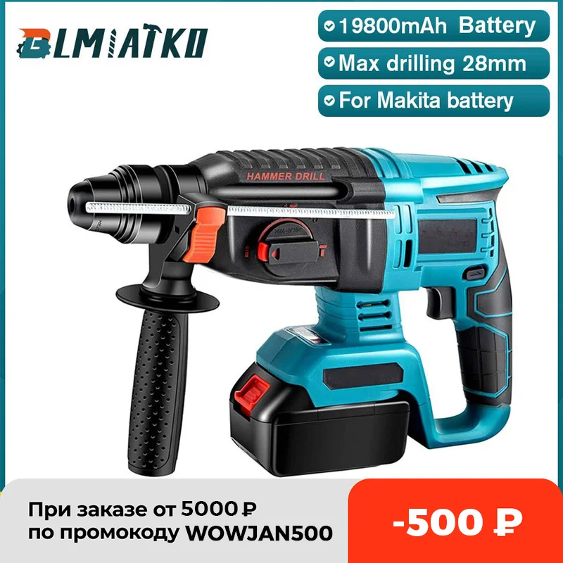 18 в бесщеточный Электрический вращающийся молоток, перезаряжаемый многофункциональный электрический молоток, ударная дрель, инструмент с батареей 19800 мАч