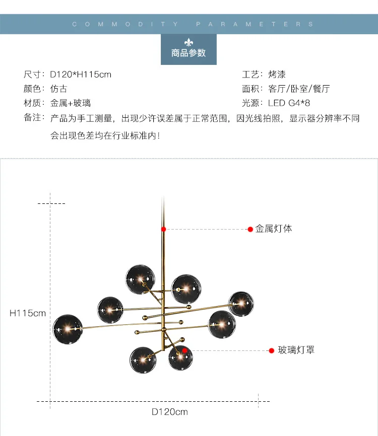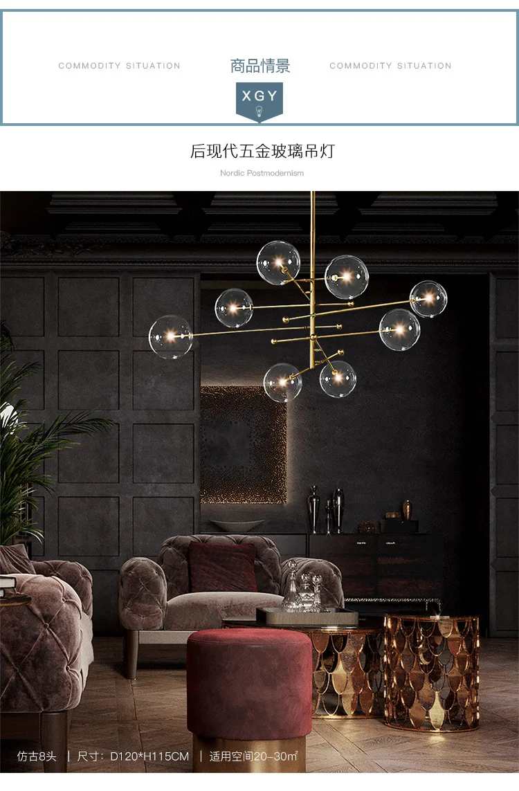 Люстра В Стиле лофт, из прозрачного стекла, с шариками, для гостино...