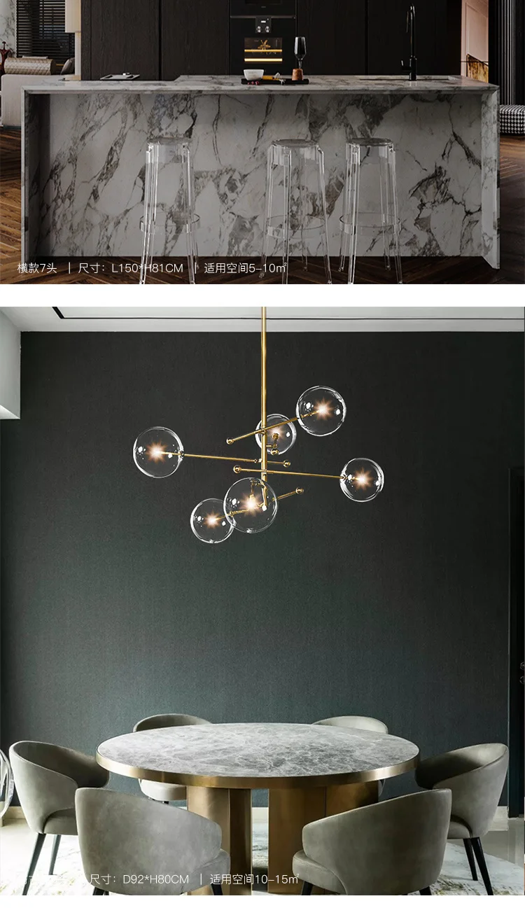 Современная стеклянная люстра с пузырьками, лампа для кухни, столов...