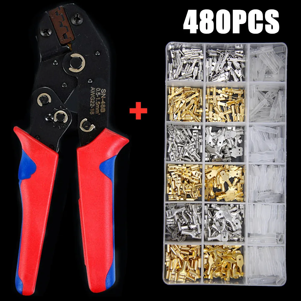 480 шт. 2,84,86,3 мм Универсальный пружинный штекер обжимной ручной инструмент Соединительные Клеммы Электрический изолированный + 1 шт. плоскогубцы