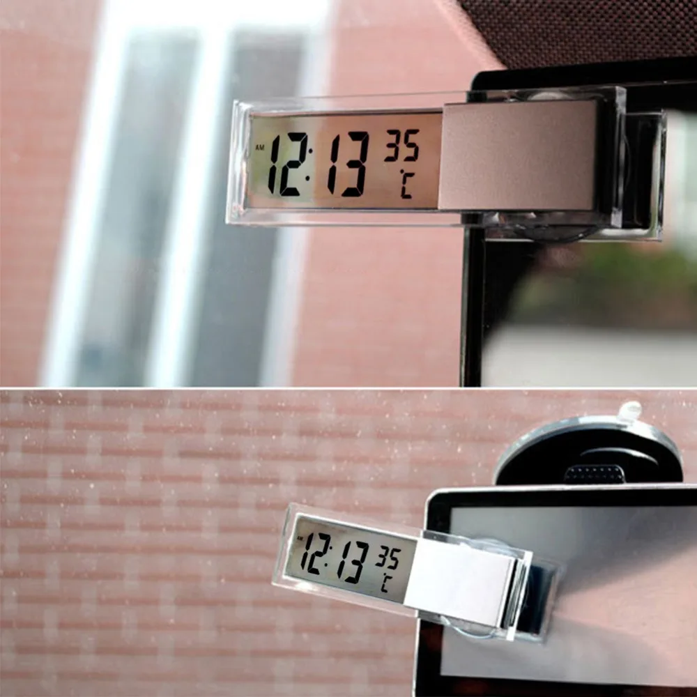 Многофункциональная автомобильная присоска 2 в 1, электронные часы-термометр с жидкими кристаллами серебристого цвета, аксессуары для салона автомобиля