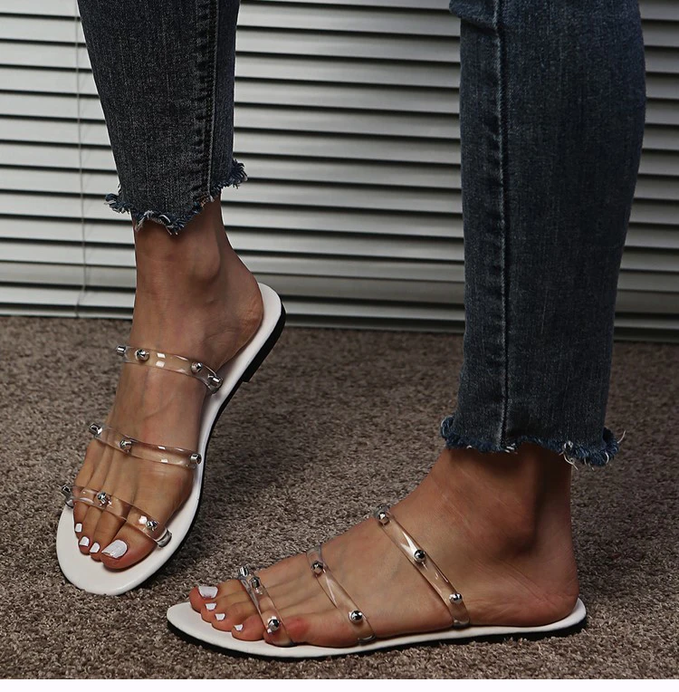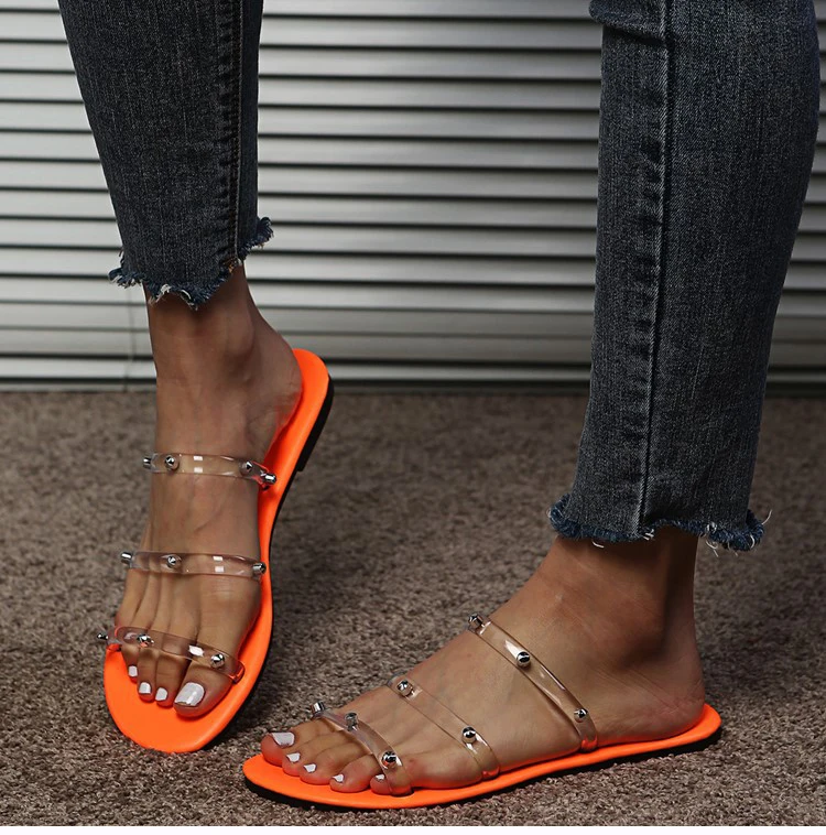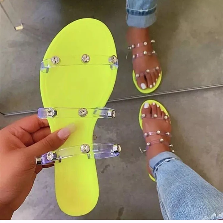 Сандалии женские на плоской подошве, однотонные пляжные тапочки без...