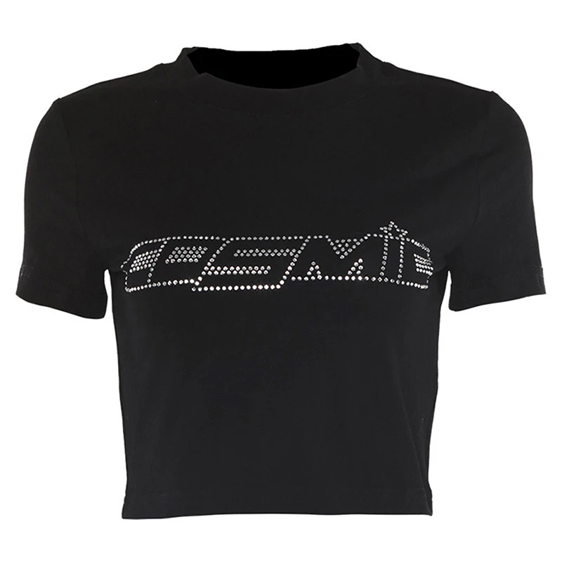 Женская Винтажная Майка в стиле панк, Черная майка со стразами и рисунком паука, укороченный топ в готическом стиле с круглым вырезом и коротким рукавом, тонкие резервуары на лето