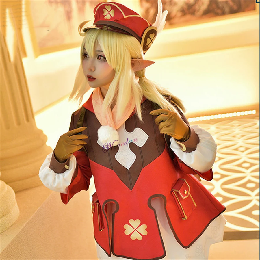 Костюм для косплея аниме-игры Genshin Impact Klee, рюкзак, обувь с париком, одежда, платье лолиты, Женский костюм для хэллоуивечерние