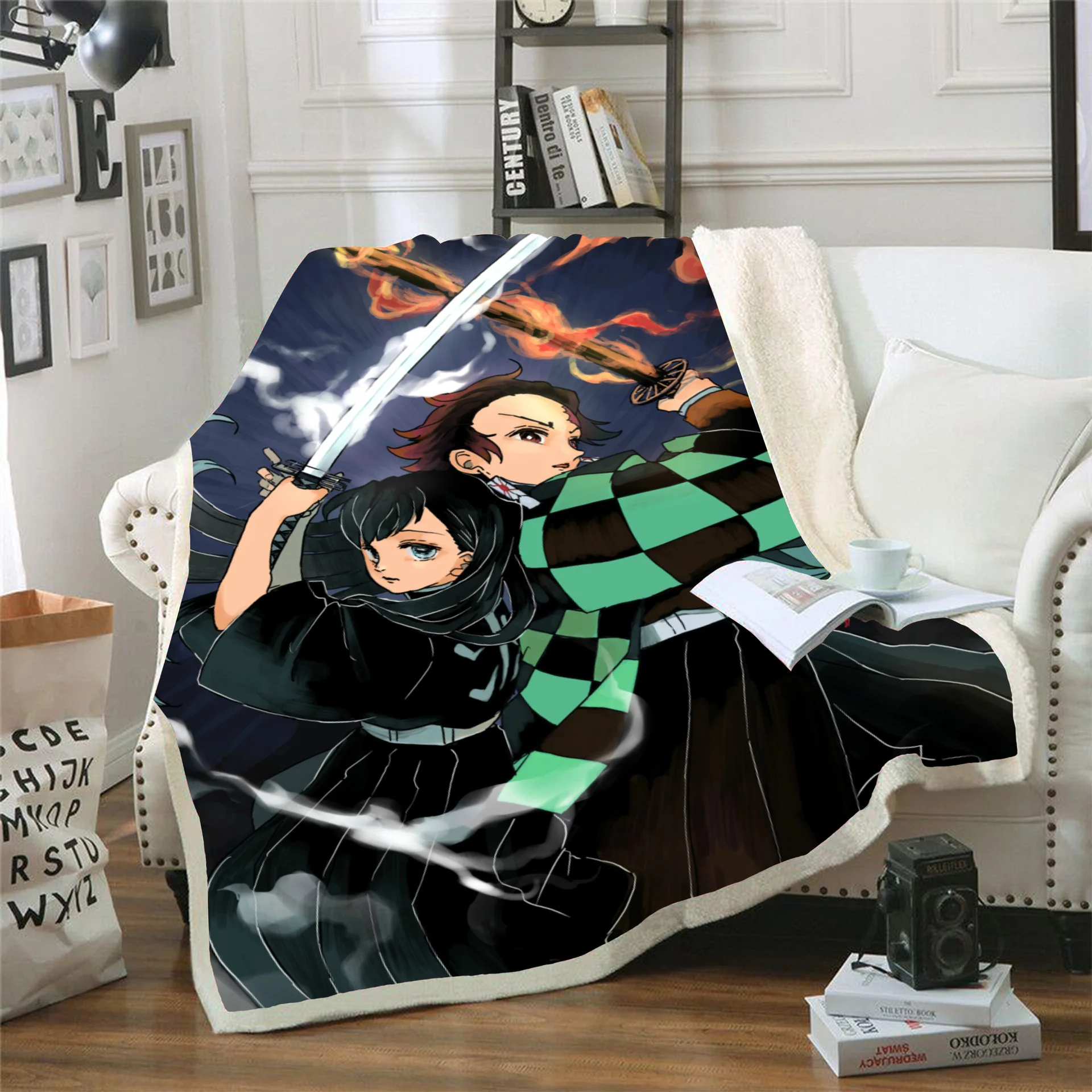 Бархатное плюшевое покрывало Kimetsu no Yaiba для девочек, покрывало с 3D рисунком аниме, покрывало для путешествий