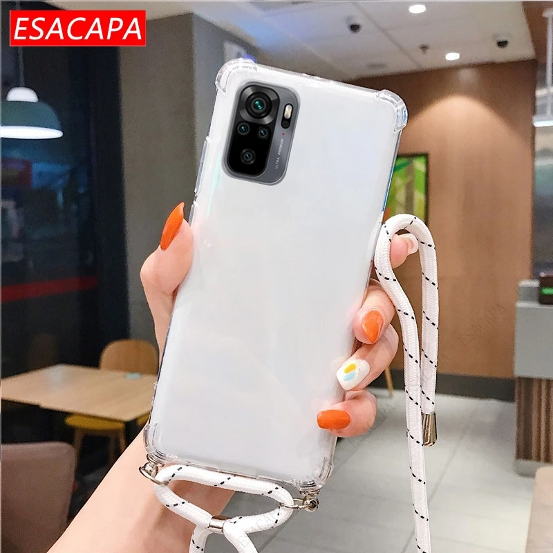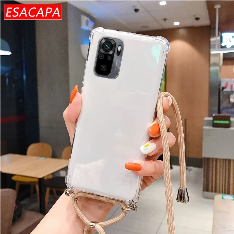 Подушка безопасности для противоударный мягкий ТПУ чехол для телефона для Redmi Note 10 Pro шейный регулируемый ремешок на шею шнур веревка прозрачный чехол из ТПУ для телефона Redmi 10X 9A 9C