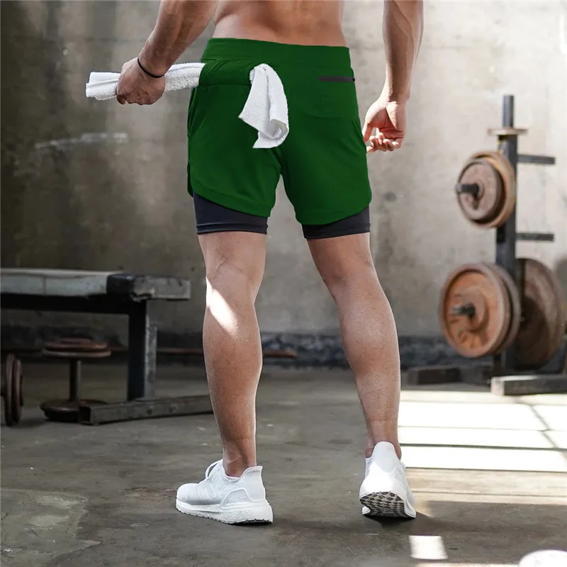 Мужские шорты для бега 2 в 1, двухслойные быстросохнущие спортивные...
